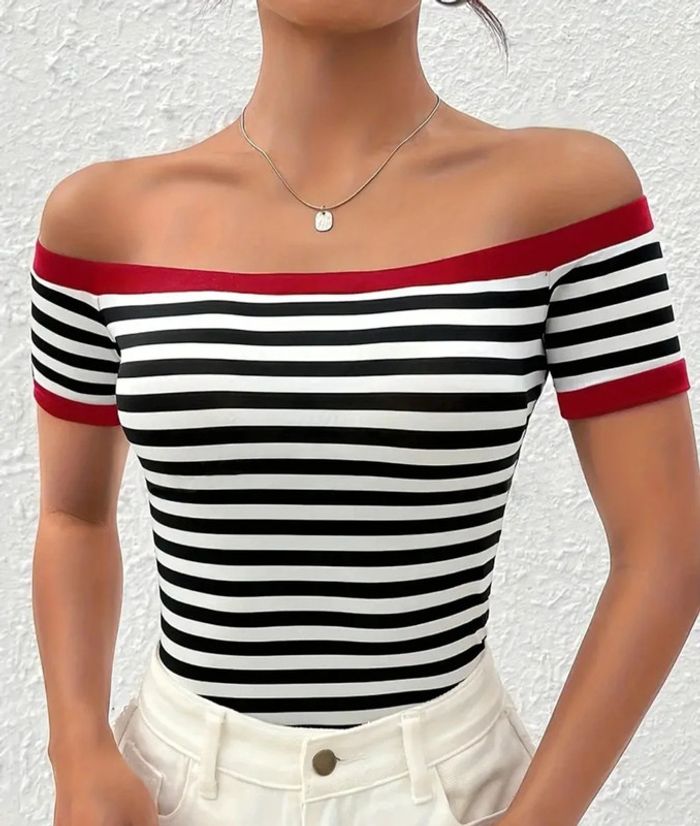 T-shirt Top épaules dénudées rayures - photo numéro 1
