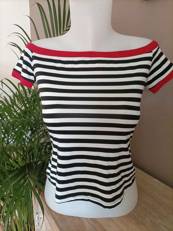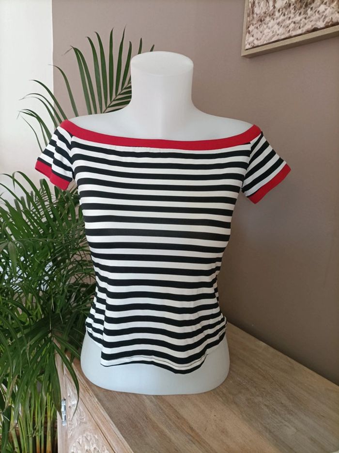 T-shirt épaules dénudées à rayures ☀️ Taille M / Neuf, jamais porté Emballage soigné et livraison rapide 📦✅ N'hésitez pas à me contacter pour plus d'informations ou d'autres photos 😀