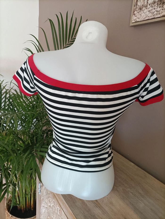 T-shirt Top épaules dénudées rayures - photo numéro 4