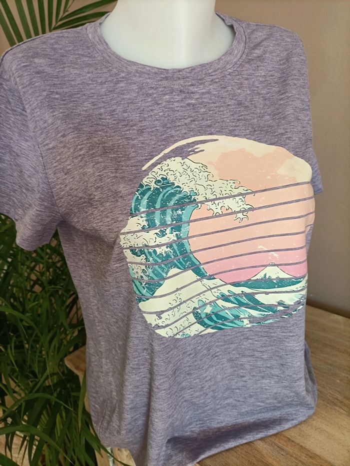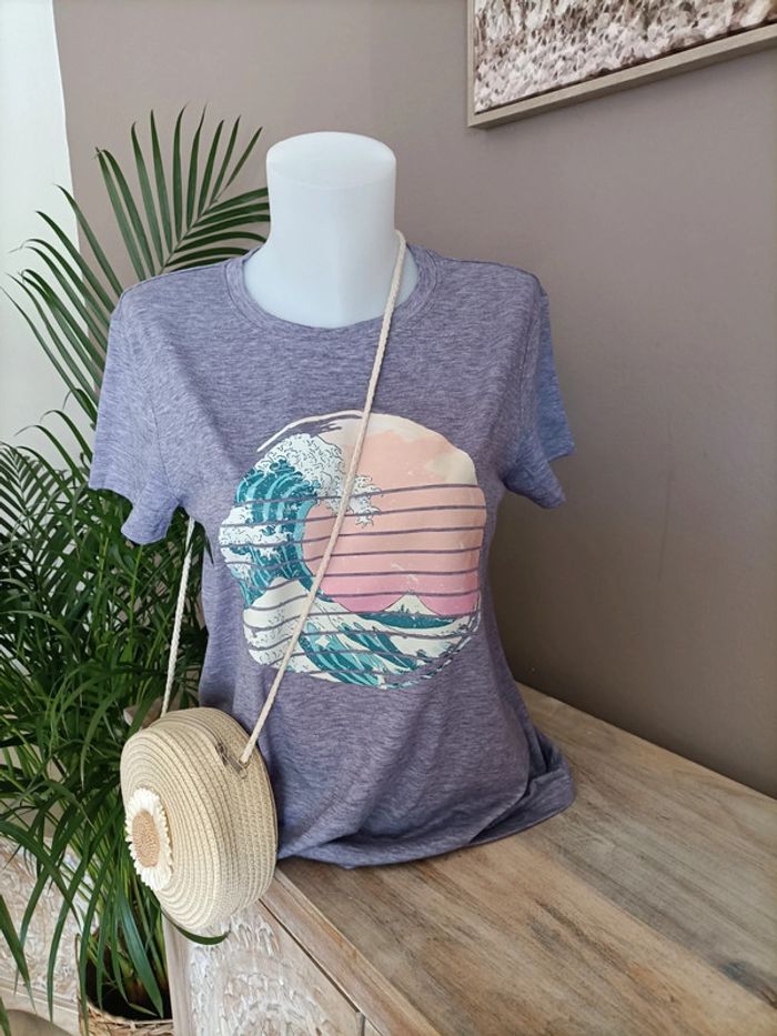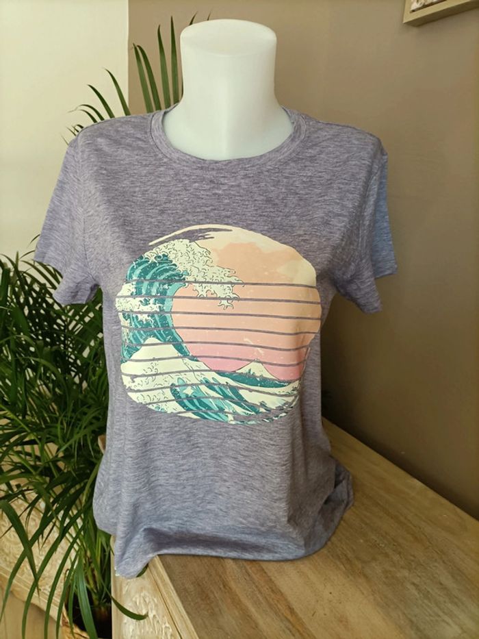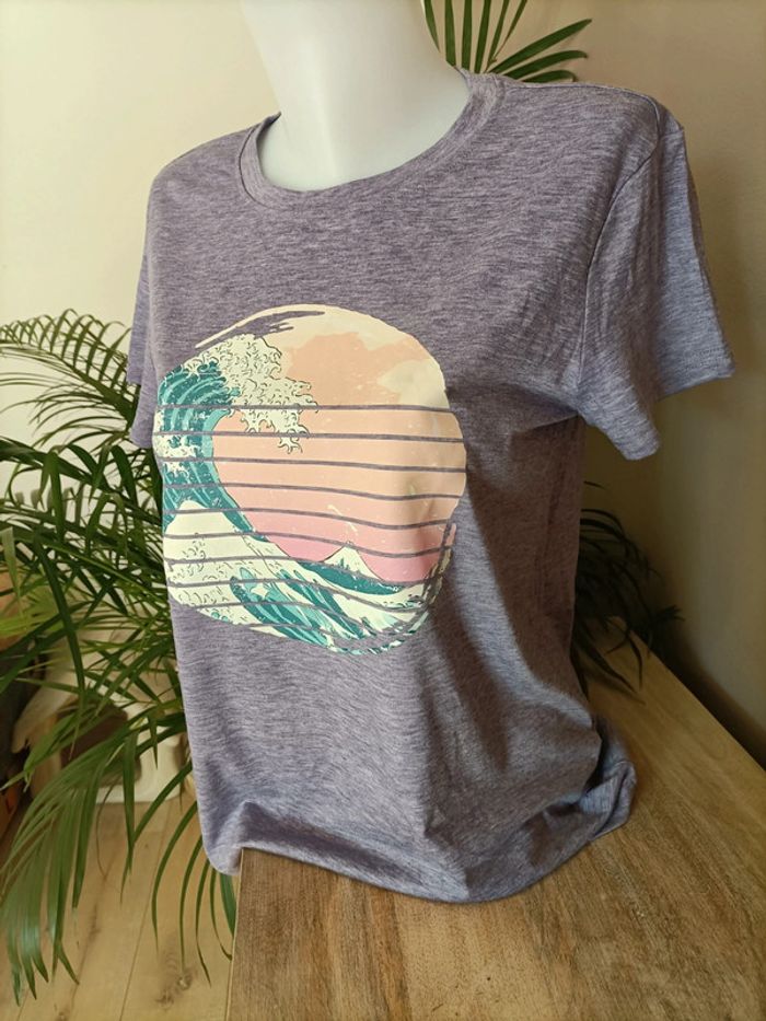 T-shirt violet clair couleur parme imprimé Plage Vague ☀️🌊 Taille M / Neuf, jamais porté Emballage soigné et livraison rapide 📦✅ N'hésitez pas à me contacter pour plus d'informations ou d'autres photos 😀