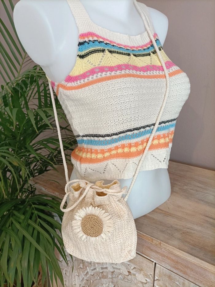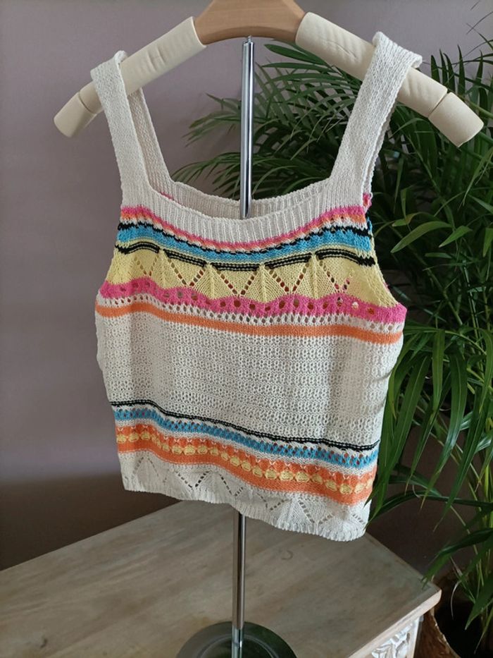 Débardeur femme beige écru et multi couleurs 🌅🩷