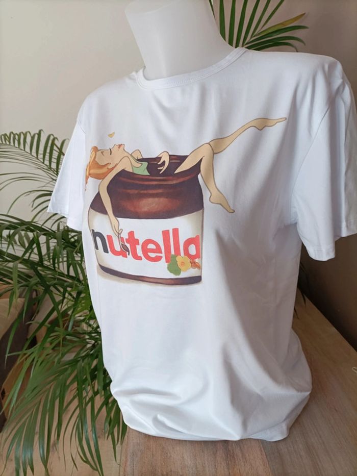 T-shirt blanc imprimé Nutella ☀️ Taille M / Neuf, jamais porté Emballage soigné et livraison rapide 📦✅ N'hésitez pas à me contacter pour plus d'informations ou d'autres photos 😀