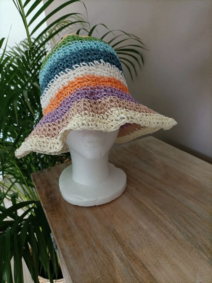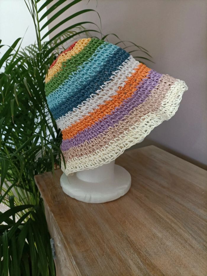 Chapeau de plage crochet multi couleurs / bordure beige clair ☀️🏝️ Emballage soigné et livraison rapide 📦✅ N'hésitez pas à me contacter pour plus d'informations ou d'autres photos 😀