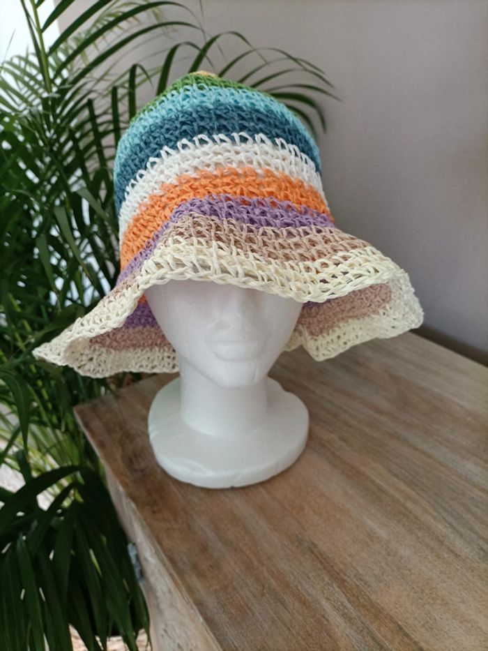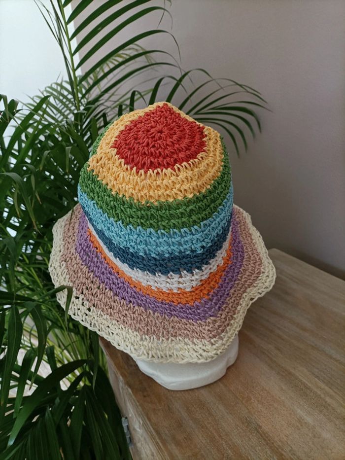Chapeau de plage crochet multi couleurs - photo numéro 1