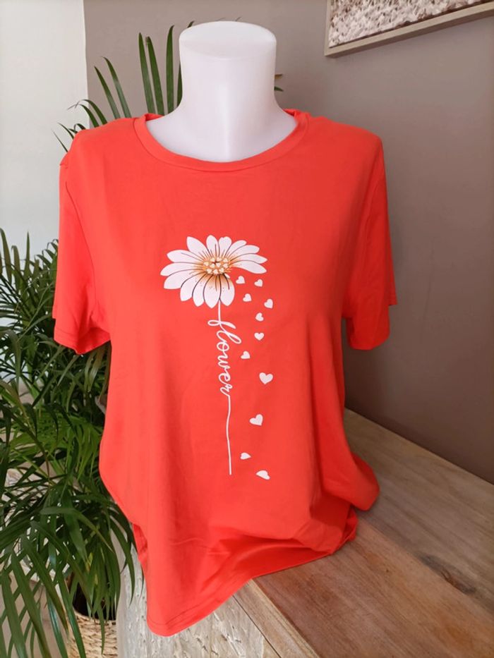 T-shirt orange imprimé Fleurs ☀️🏝️ Taille XXL / Neuf, jamais porté Emballage soigné et livraison rapide 📦✅ N'hésitez pas à me contacter pour plus d'informations ou d'autres photos 😀