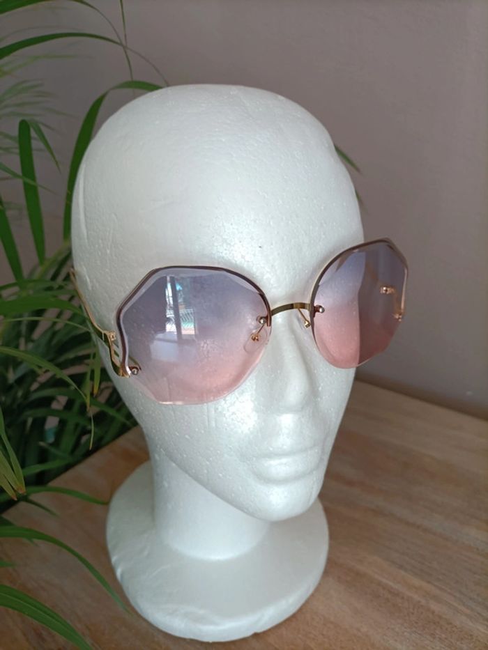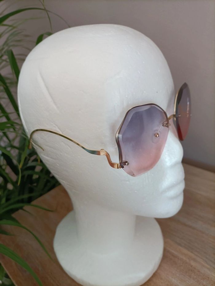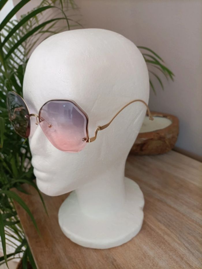 Lunettes de Soleil ronde Vintage avec verres dégradés bleu et rose et monture dorée ☀️