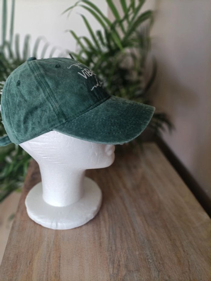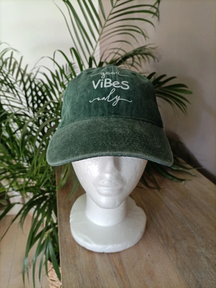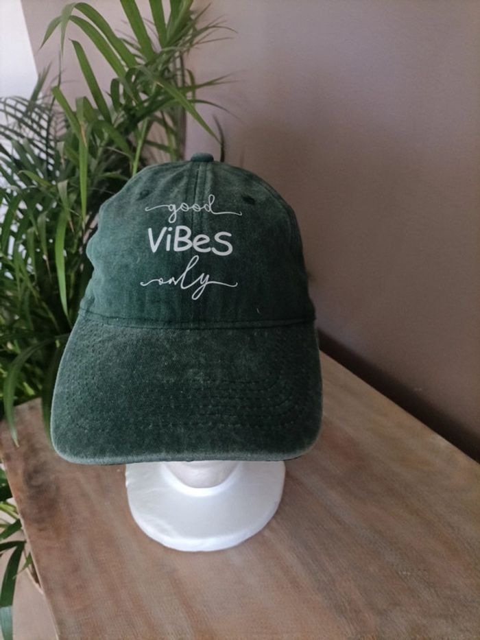 Casquette adulte réglable verte effet délavé Good Vibes ☀️