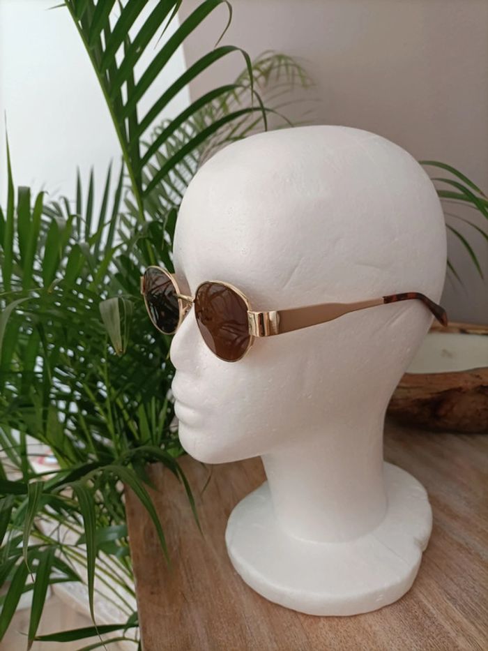 Lunettes de Soleil ovales verres marrons monture dorée - photo numéro 1