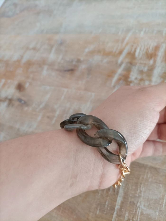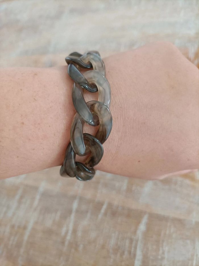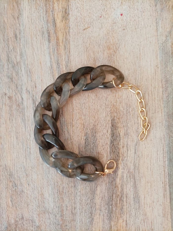 Bracelet réglable chaîne épaisse acrylique clear effet marbré noir ☀️