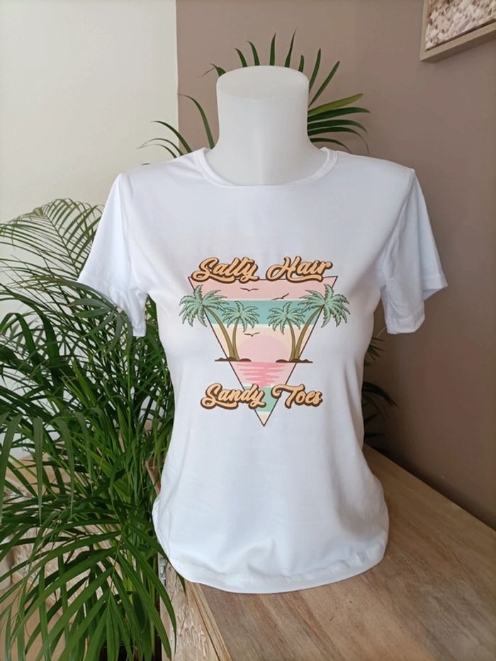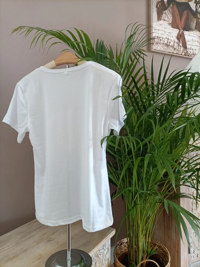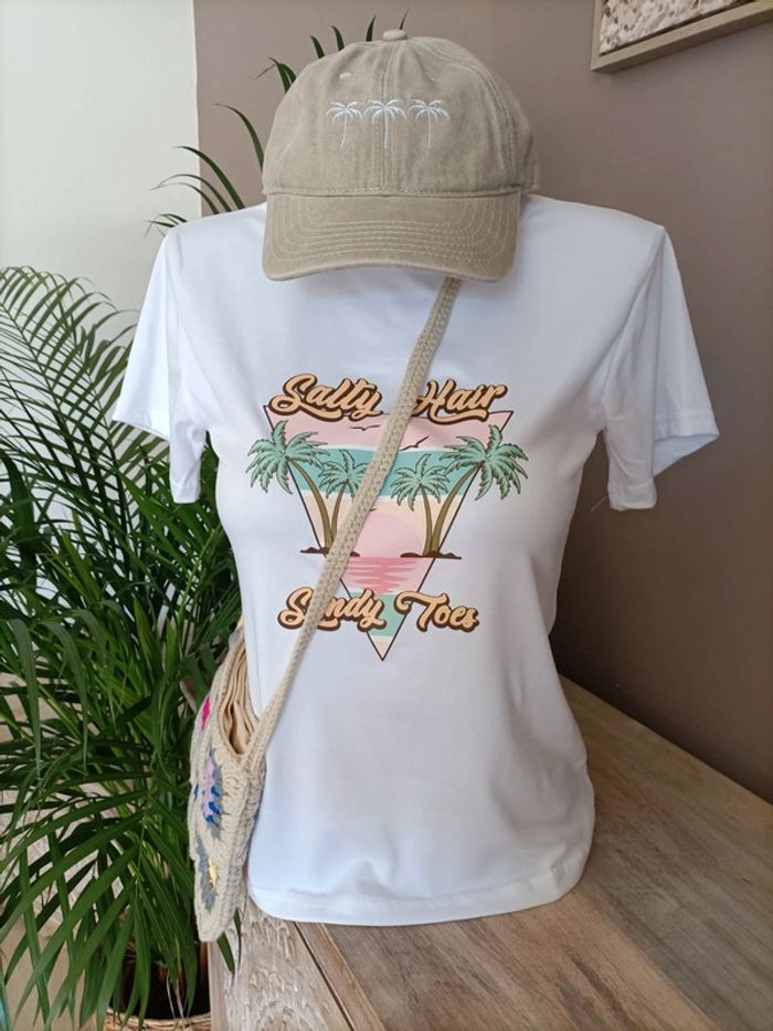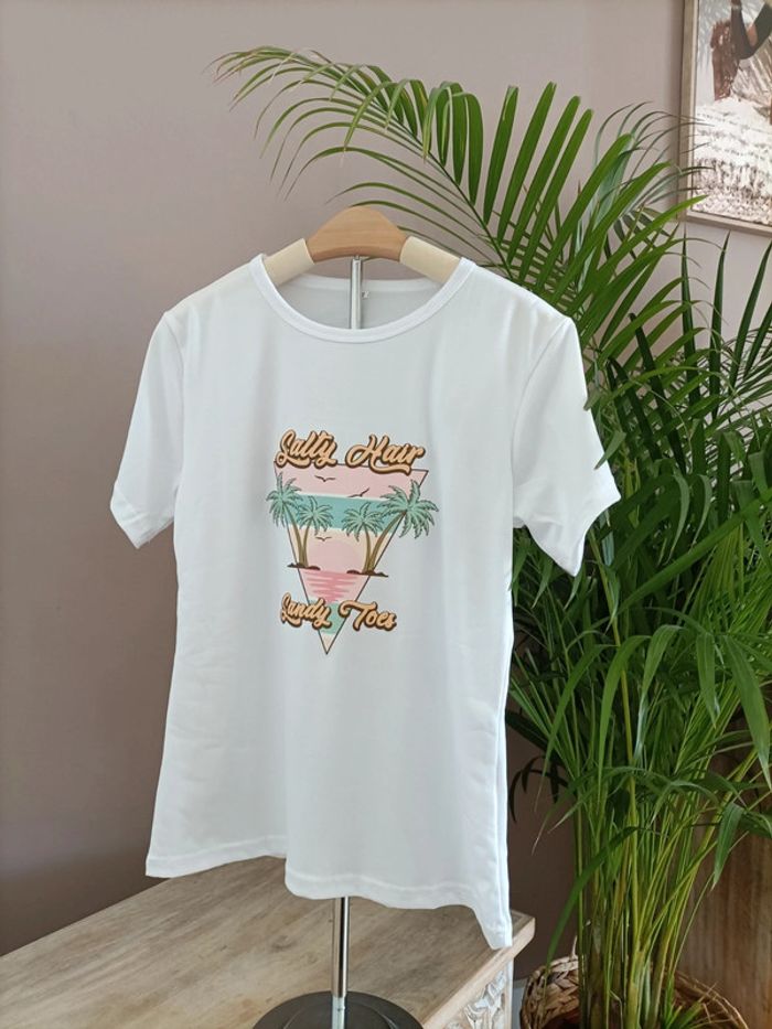 T-shirt blanc couleur pastel imprimé Palmiers ☀️🏝️ Taille M / Neuf, jamais porté Emballage soigné et livraison rapide 📦✅ N'hésitez pas à me contacter pour plus d'informations ou d'autres photos 😀