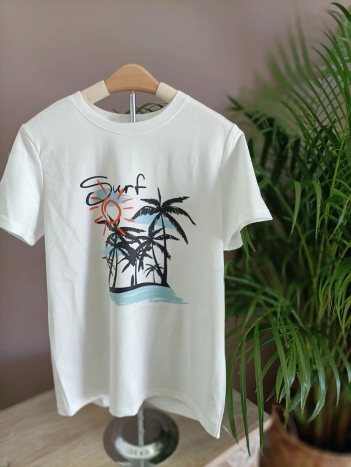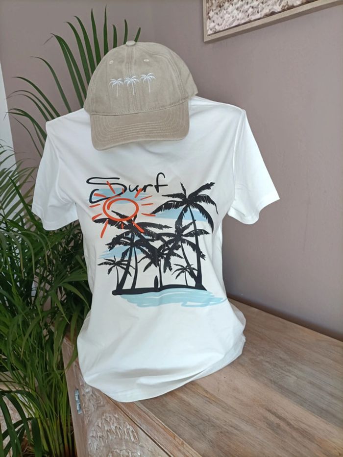 T-shirt blanc avec imprimé Surf/Palmier - photo numéro 1