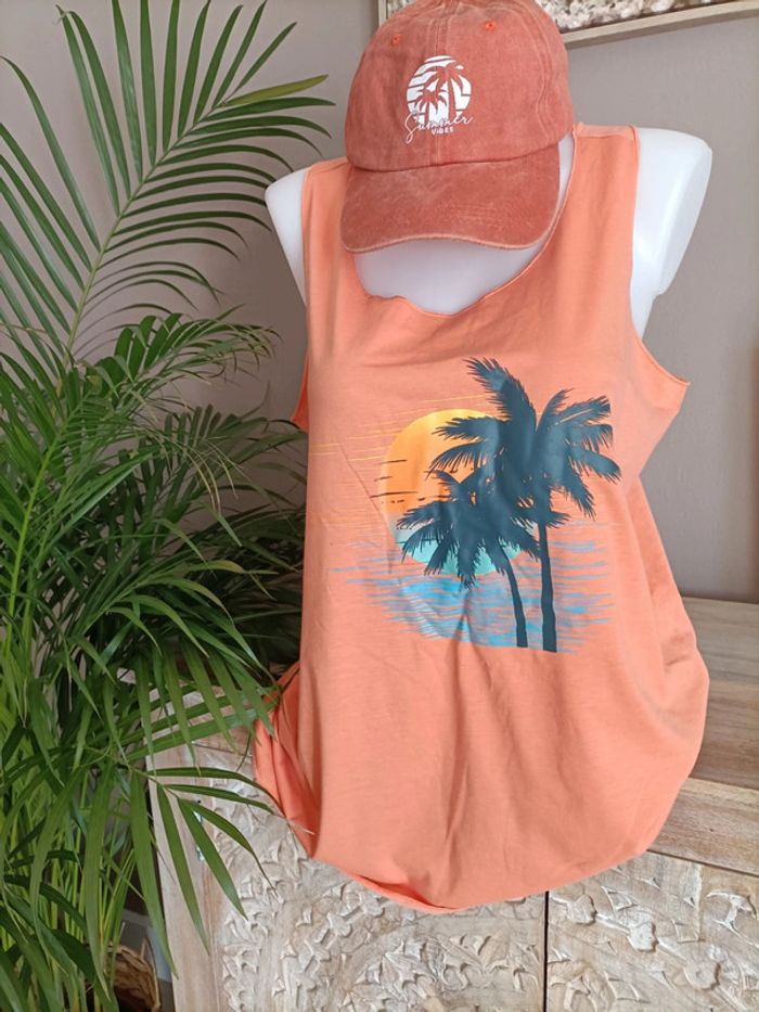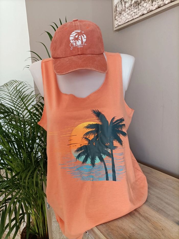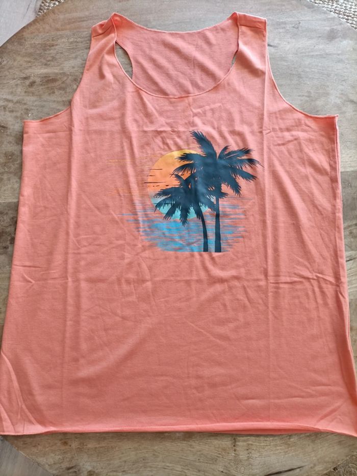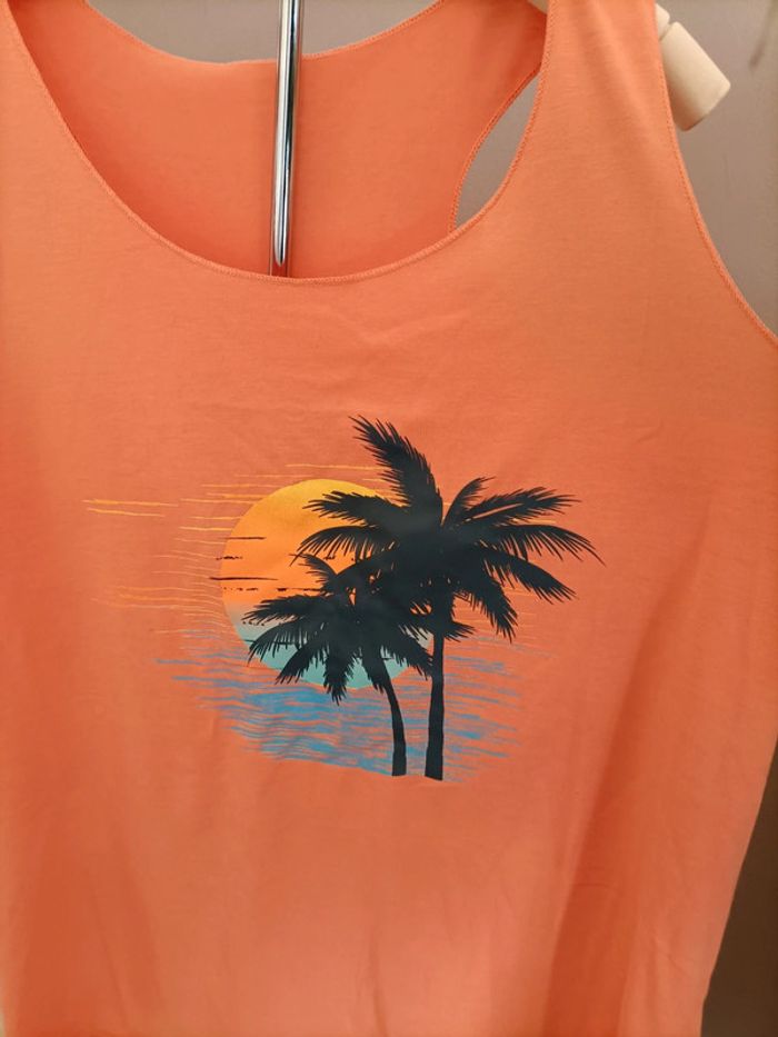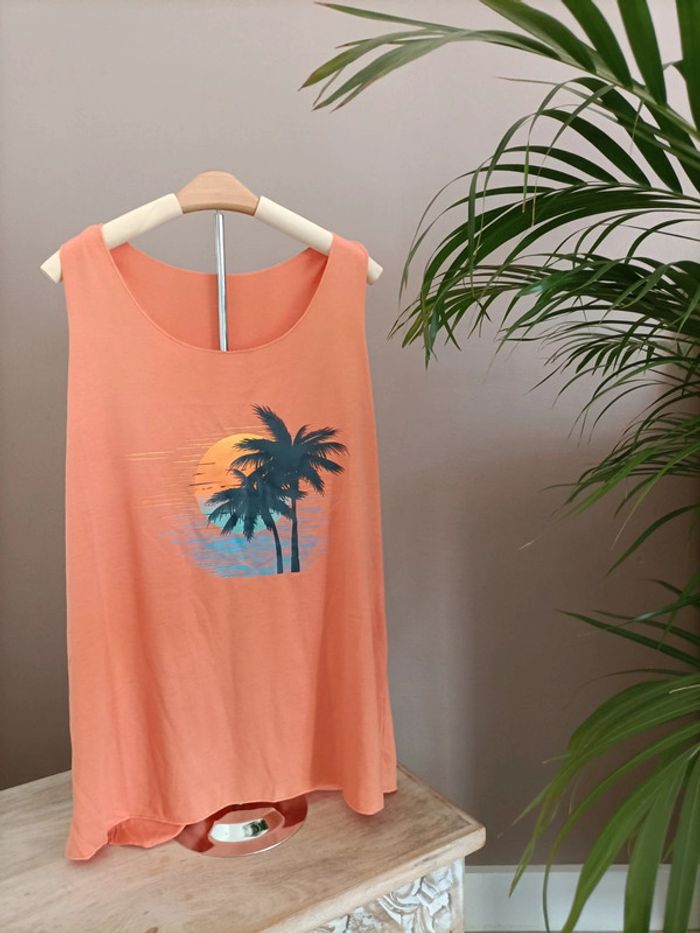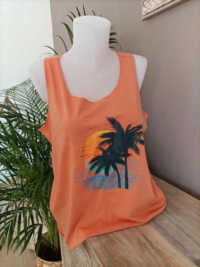 Débardeur Femme orange corail avec imprimé Palmiers ☀️🏝️