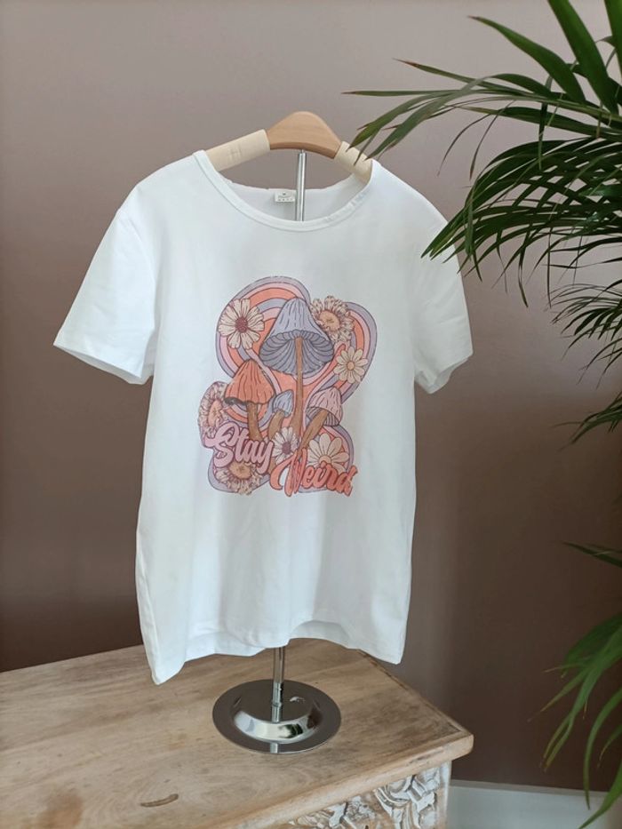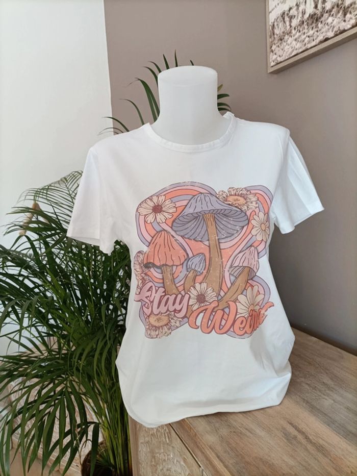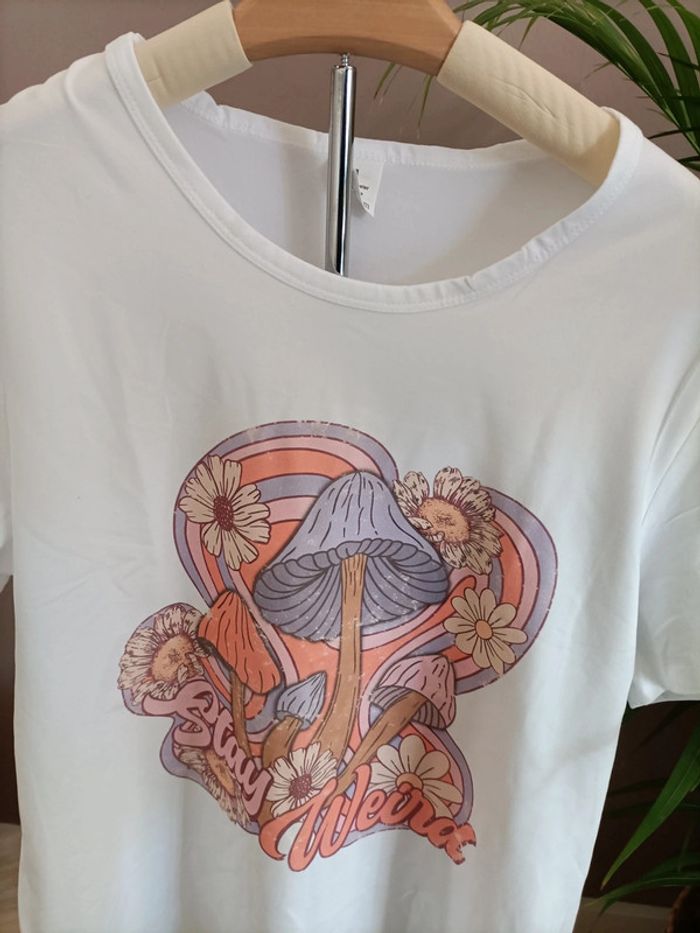 T-shirt blanc avec imprimé pastel Fleurs/Champignons 🌸🩷🩵