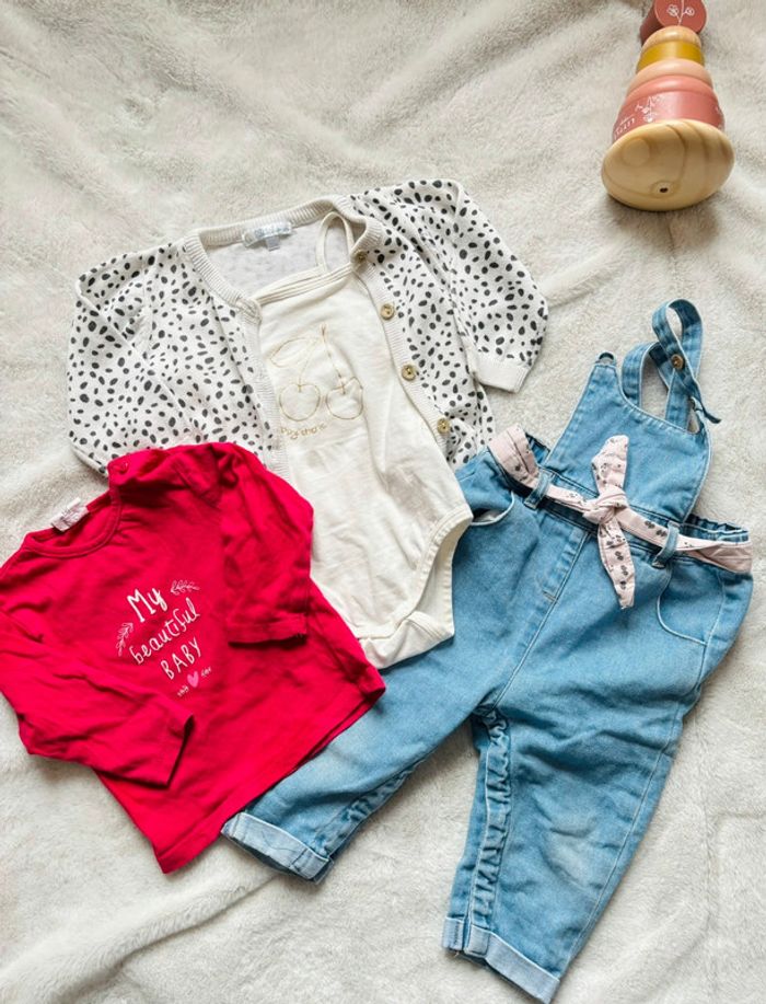 Ensemble 12 mois Gilet , t-shirt , body à bretelles , salopette