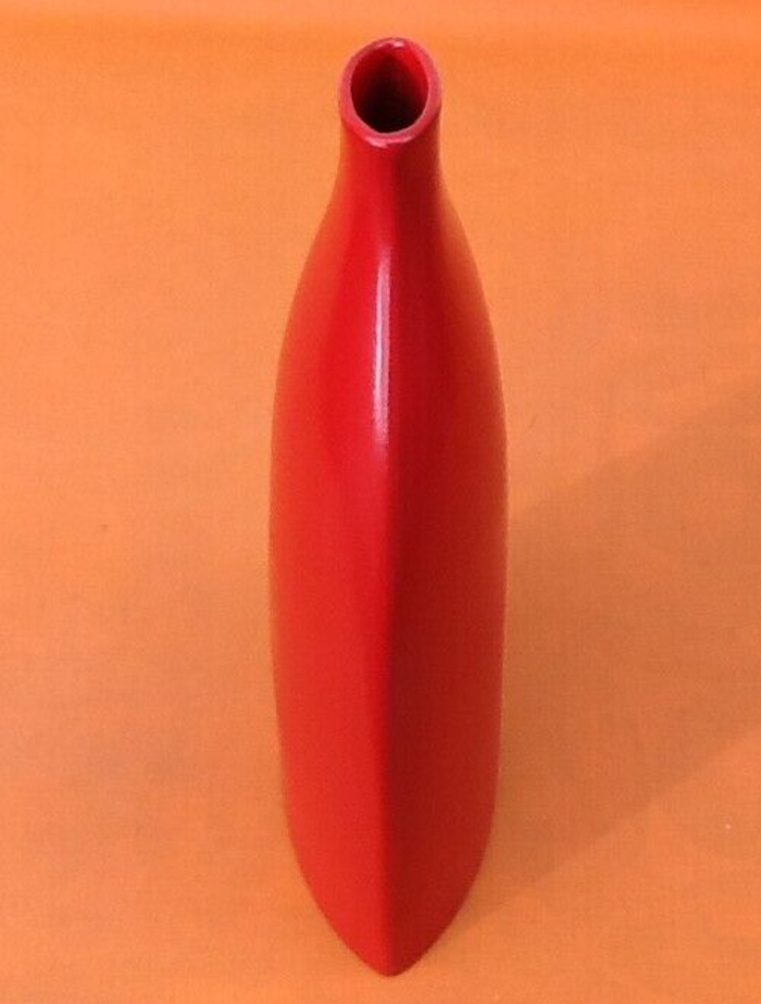 Grand vase plat contemporain Céramique de couleur rouge Hauteur : 345mm Largeur : 200mm Poids : 1kg080 Le vase plat allie élégance et originalité, garni de bouquets secs, tels que des branches de pampa, des fleurs de coton ou des graminées séchées, apportera une touche de luxe à votre intérieur...