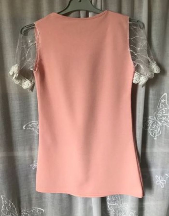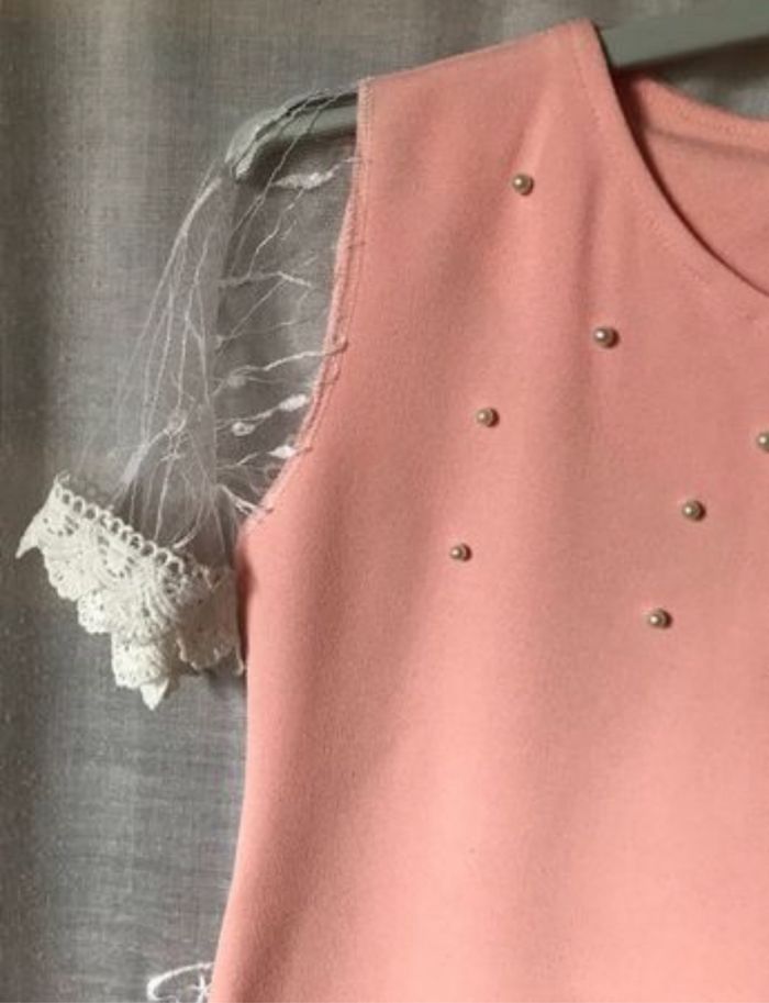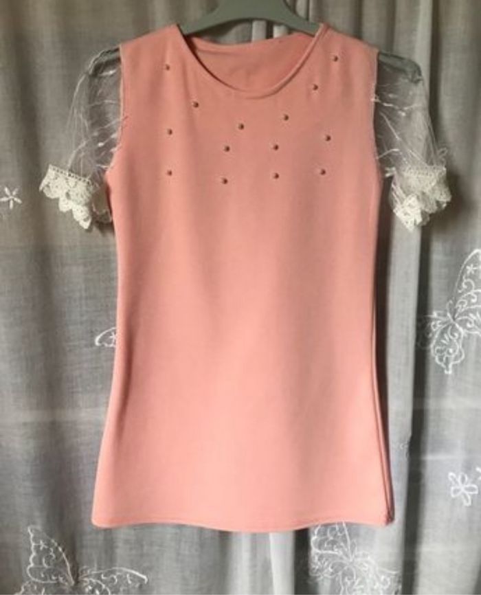Jolie robe de cérémonie Rose clair corail, un petit fil tiré, voir photo , sinon très bon état Manches courtes en fine dentelle Taille 6 ans