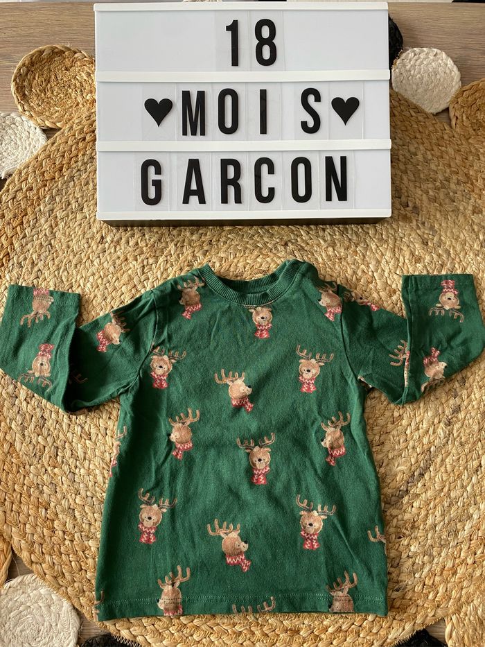 Maillot manches longues en très bon état. Motif Rennes de Noël. Peu porté.
