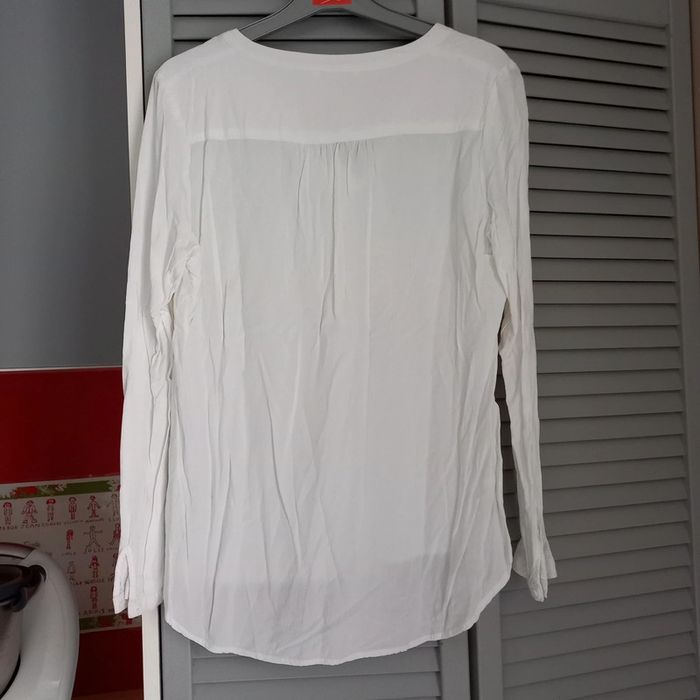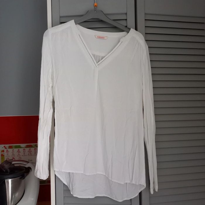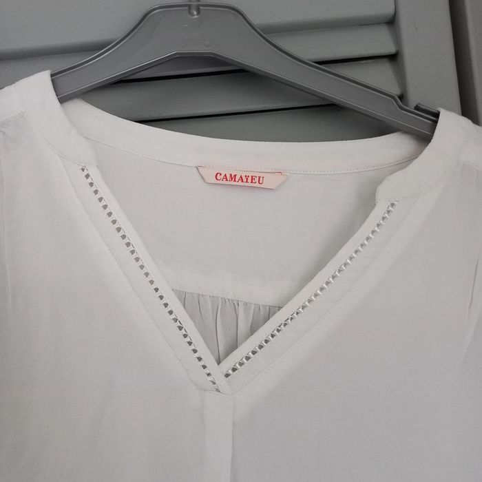 Blouse manches longues blanche Col v avec détail ajouré Camaieu Taille 36