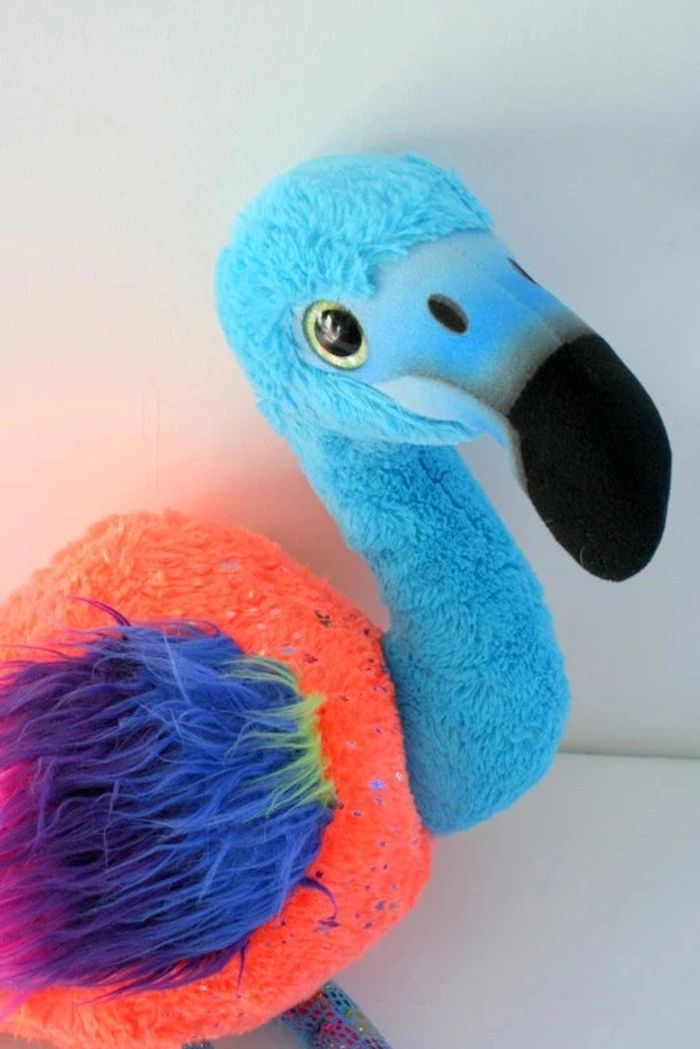 Grande peluche Flamant rose multicolore achetée chez Picwic Toys, taille 80cm, 660g