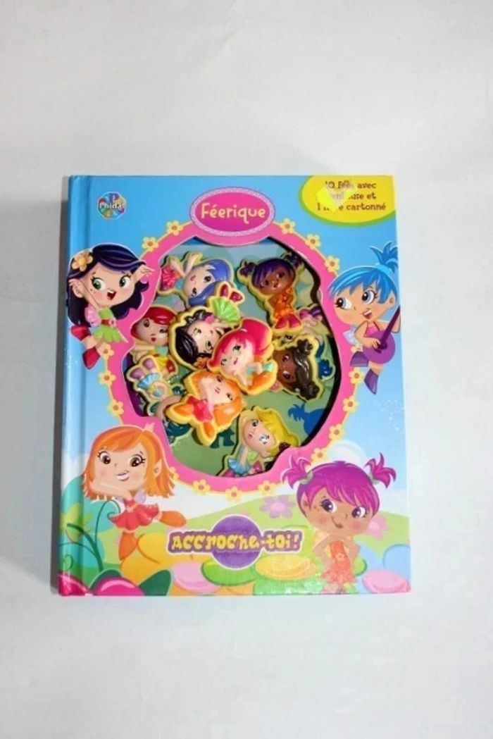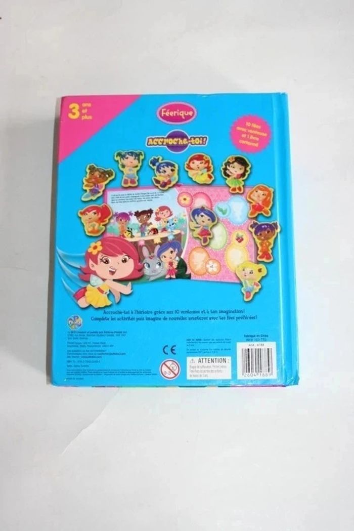 Accroche-toi de chez Phidal, 10 fées avec ventouse + 1 livre cartonné, 3 ans et plus, un peu abimé à la reliure et sur les coins, fées légèrement frottées voire un petit peu de feutre mais rien de méchant, 515g Accroche-toi à l'histoire grâce aux 10 ventouses et à ton imagination! Complète les activités puis imagine de nouvelles aventures avec tes fées préférées!