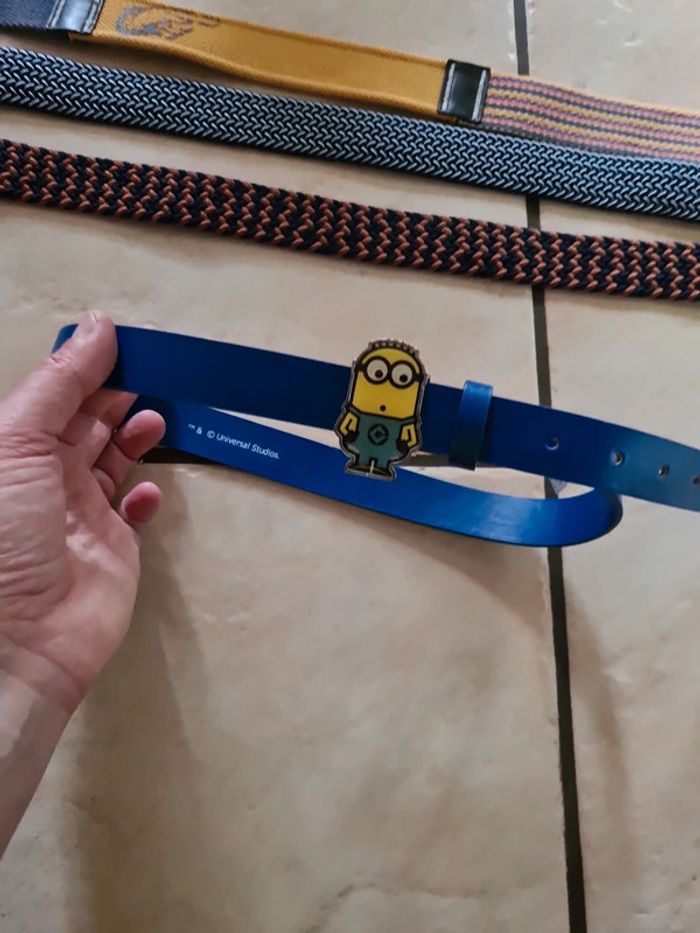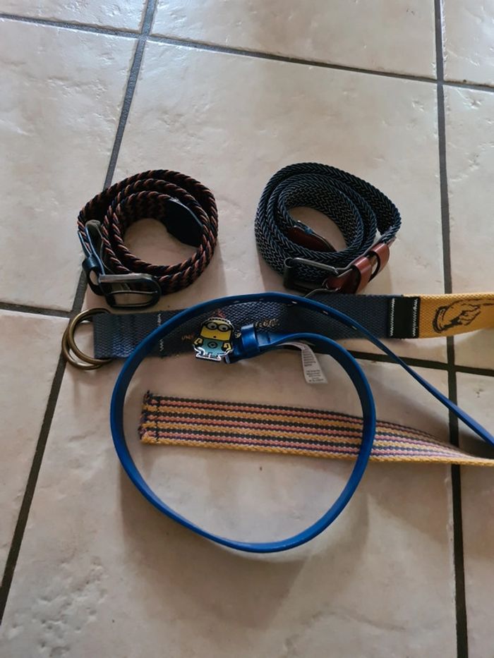 2 ceintures neuves en tissés colorés 1 ceinture les minions voir photos état satisfaisant 2 premiers trous ont bien servis 1 ceinture ycc tbe Colis 15