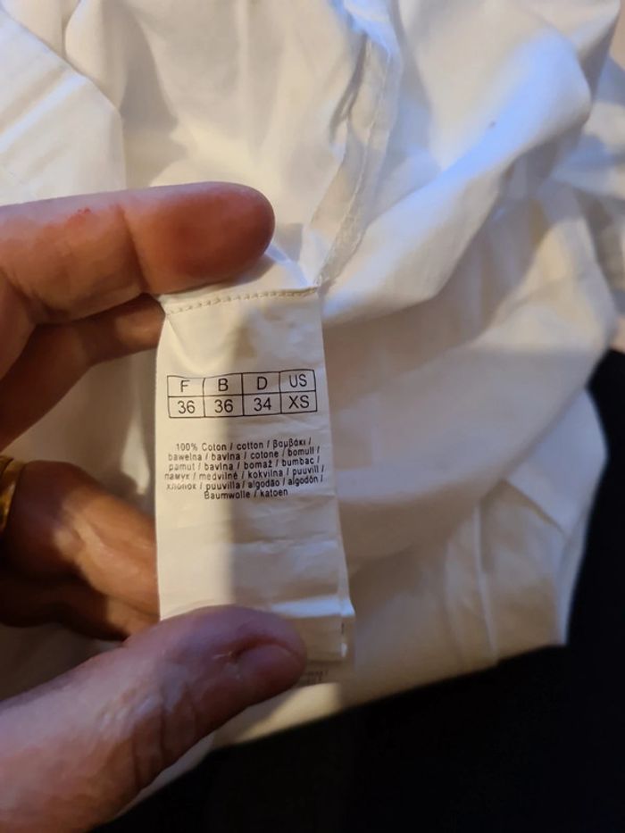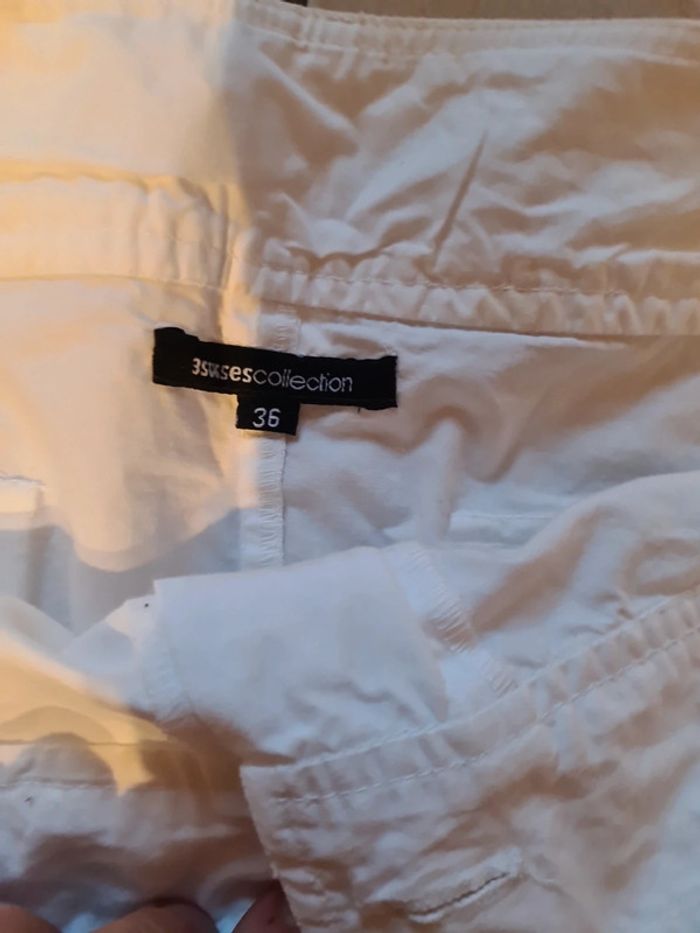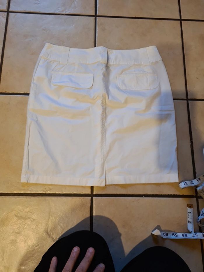 Blanche avec 2 fausses poches arrieres 43 cm de haut 39 cm de large à la taille 46 cm de large en bas de jupe Colis 8