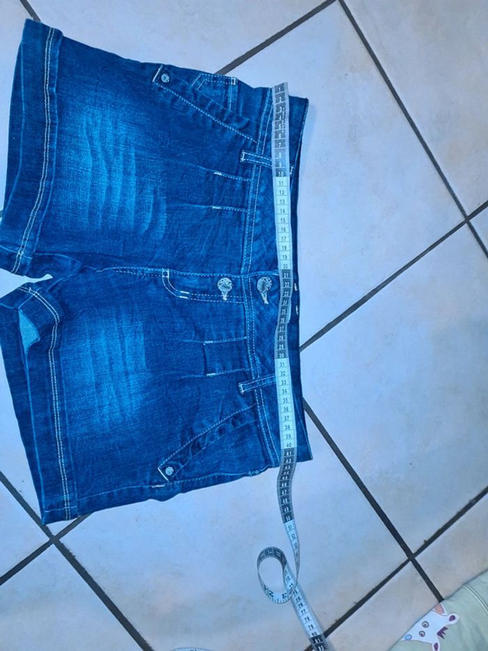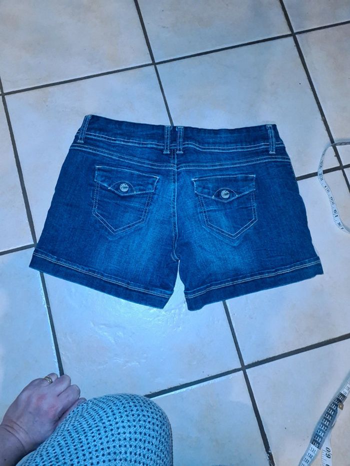 Tbe 42 cm à la ceinture . Matière extensible ramenant à 48 cm en tirant à la taille Poches 2 boutons et une fermeture éclaire. Colis 26