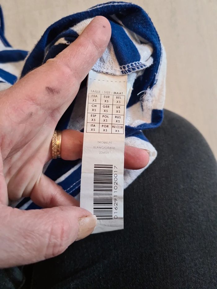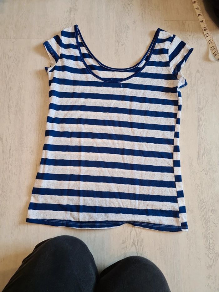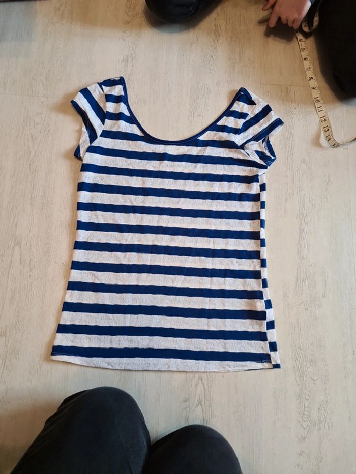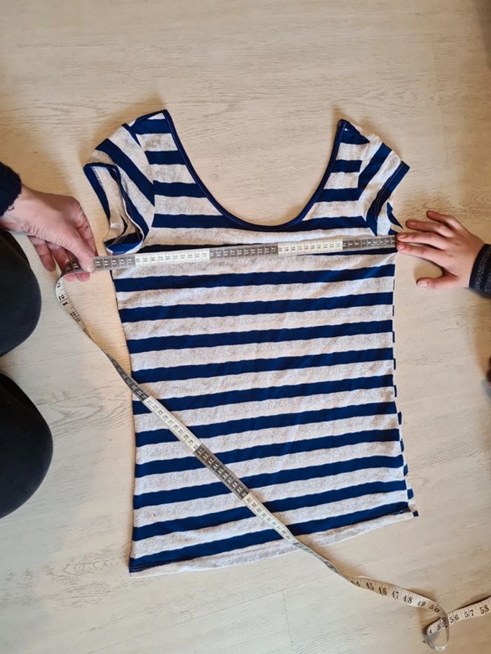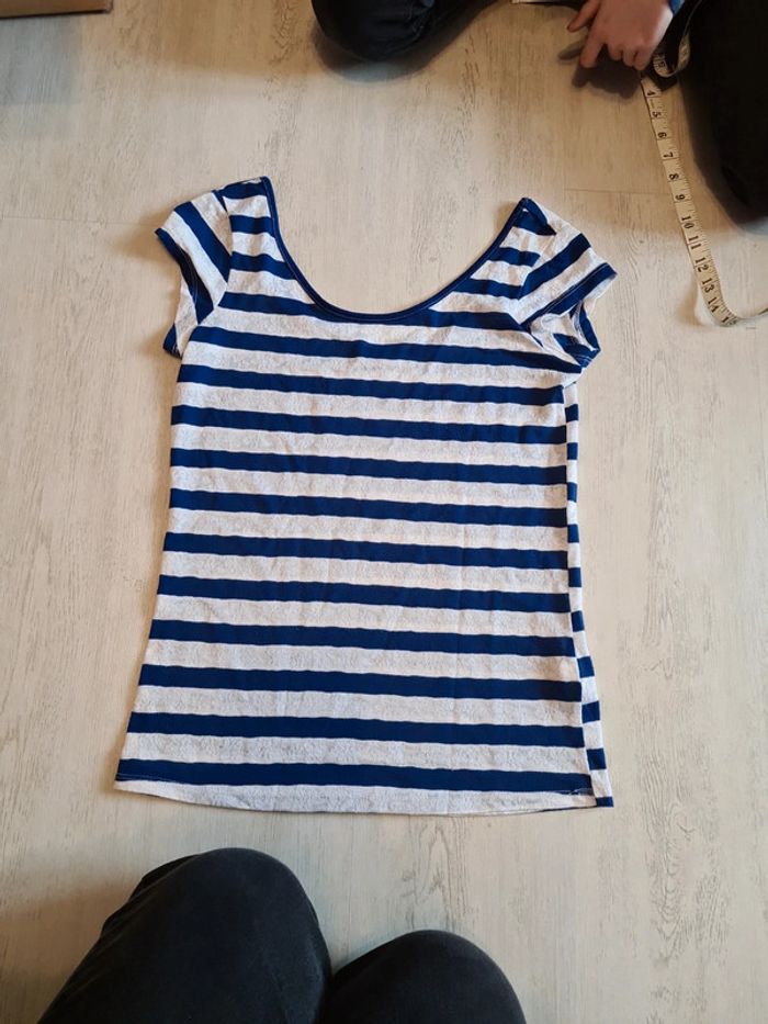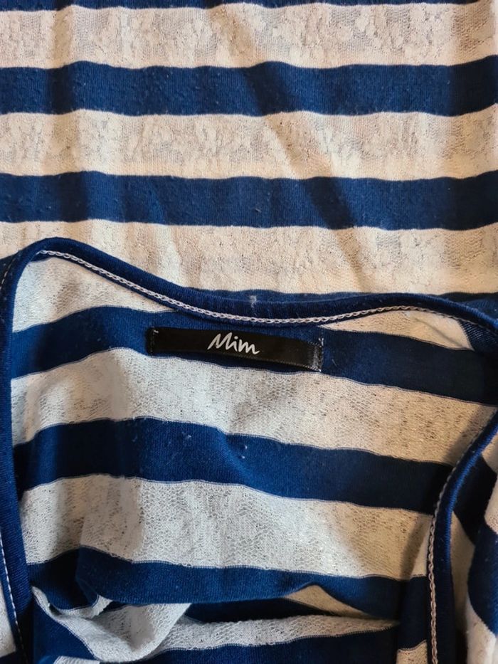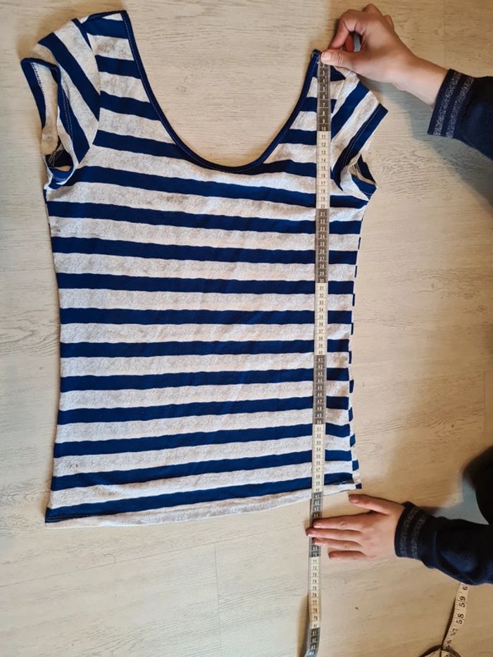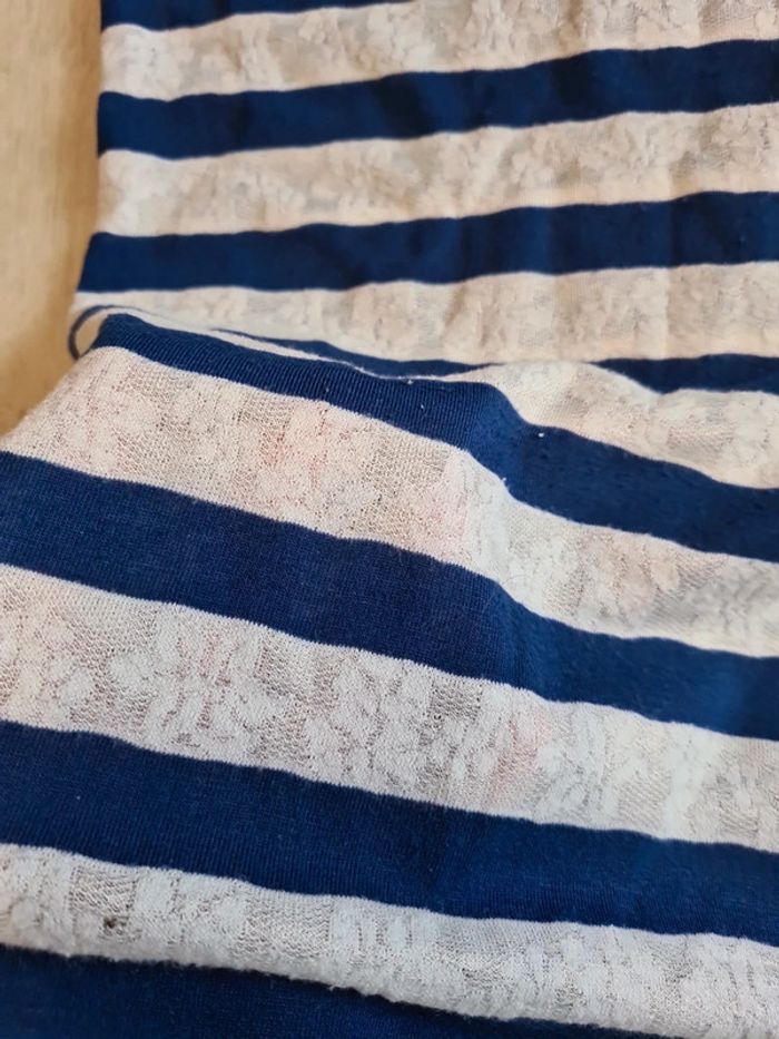 Marin avec dentelles dans le blanc Très sympa Comme sur les photos plus échancré dans le dos que sur le devant Dimensions sur photo Colis 32