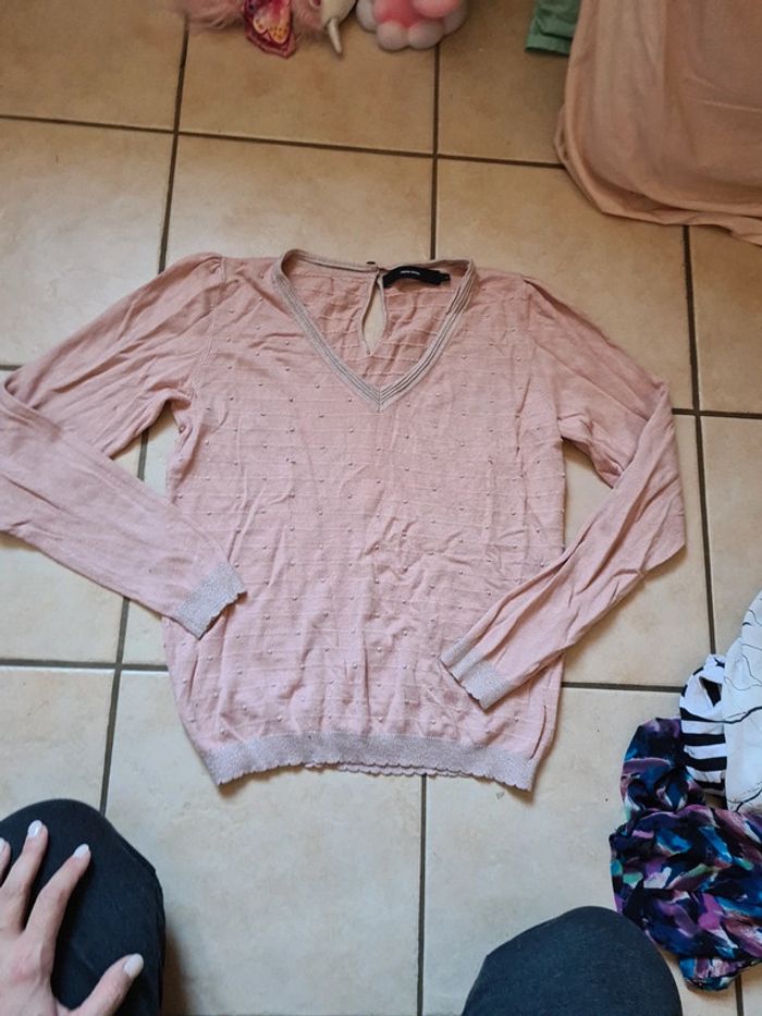 Rose avec petits points en reliefs et côte en brillants rose Tbe Colis 10 # 38Mfemme