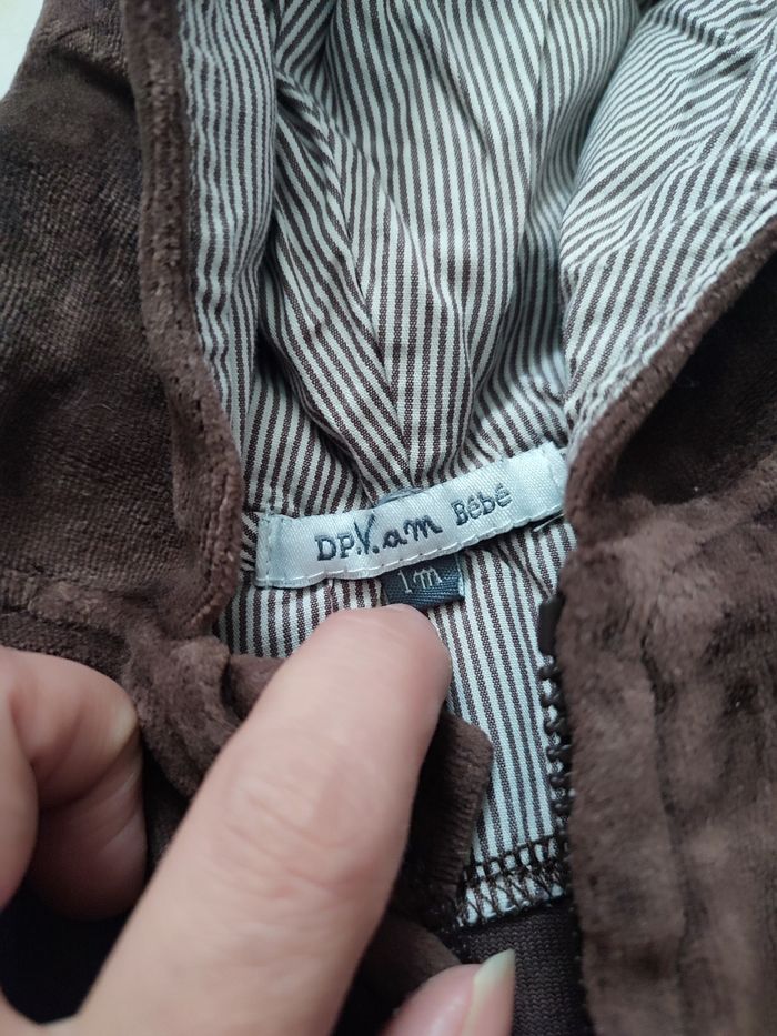 Survêtement velours marron Dpam taille 1 mois - photo numéro 3