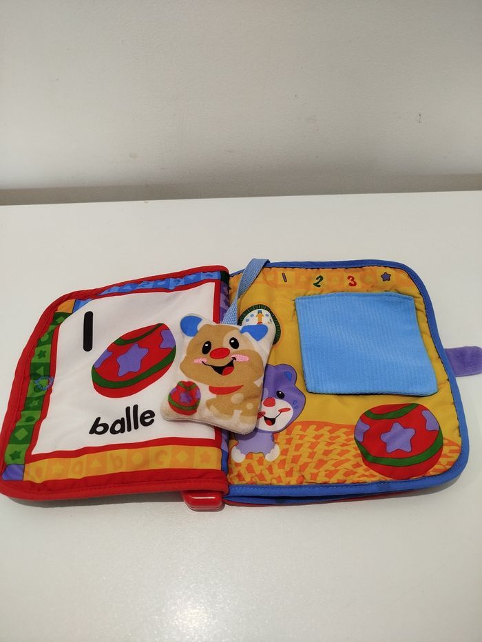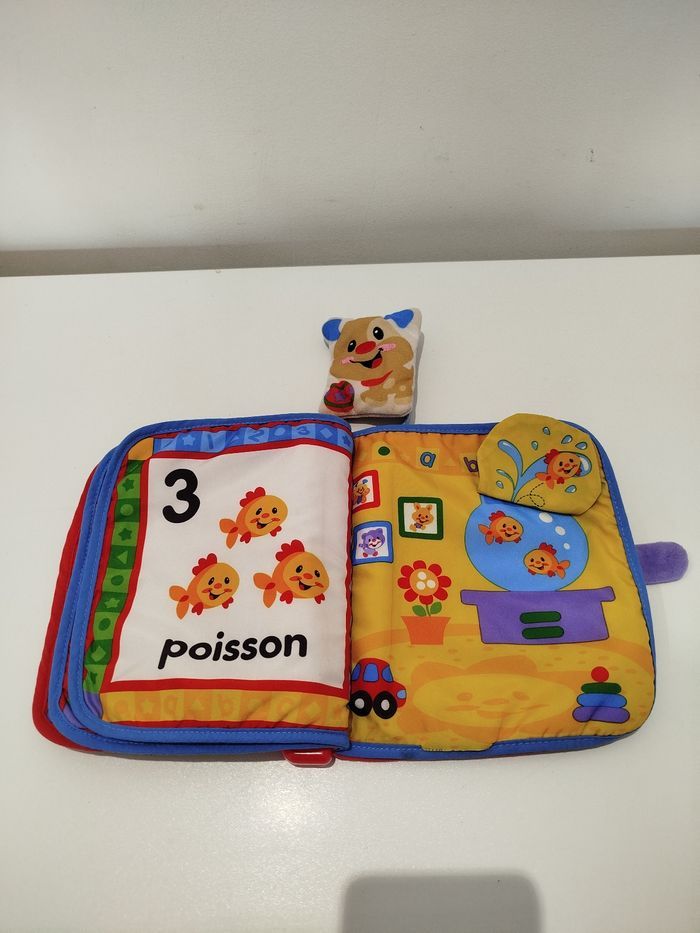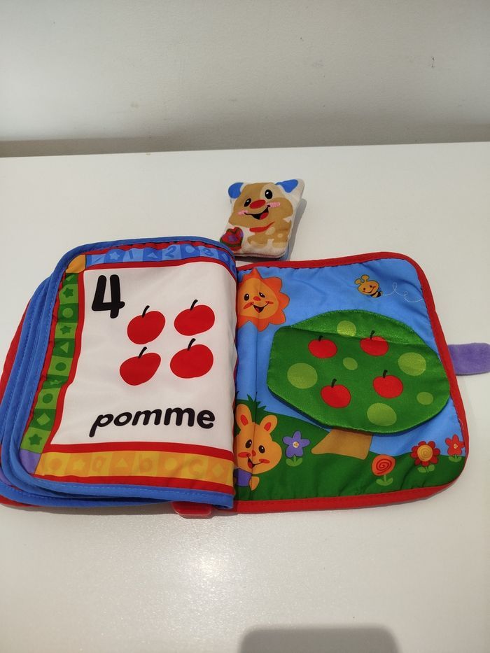 Livre musical interactif en tissu pour apprendre à compter en chansons avec un petit chien.