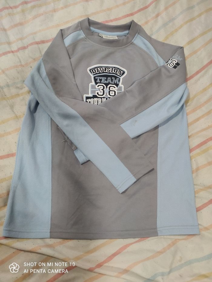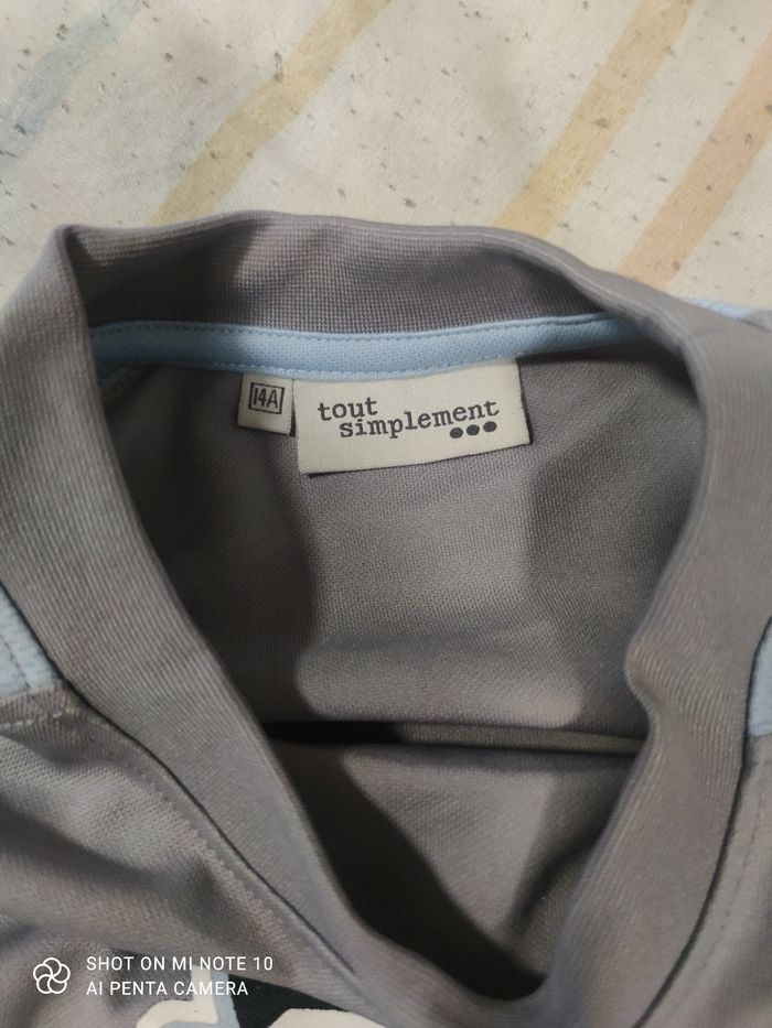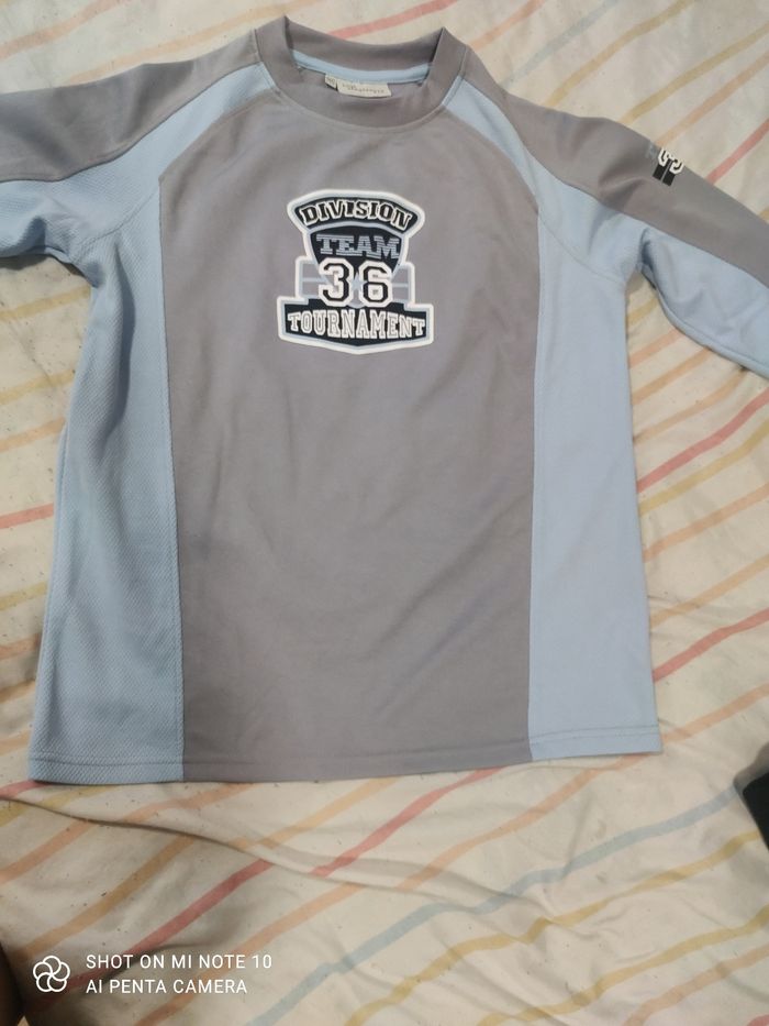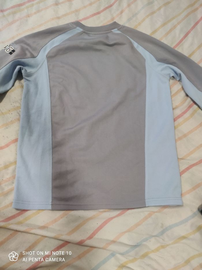 Pull garçon taille 14 ans Couleur gris et bleu Idéal pour gardien Petite tâche sur une manche comme le montre la dernière photo