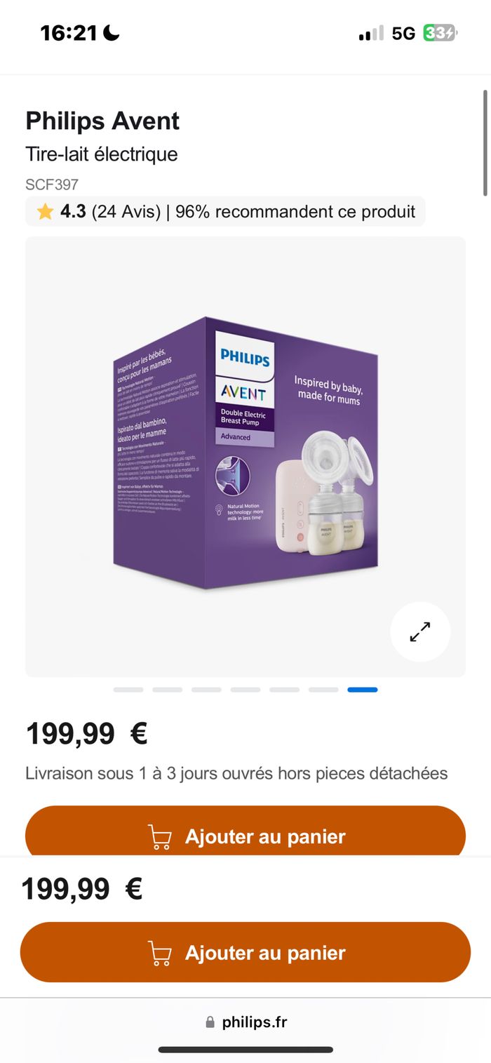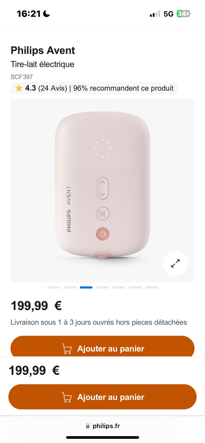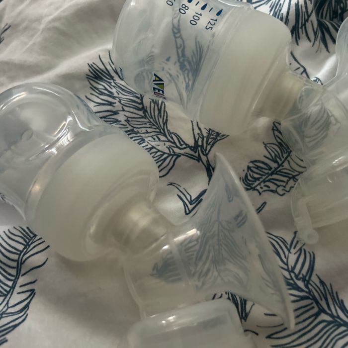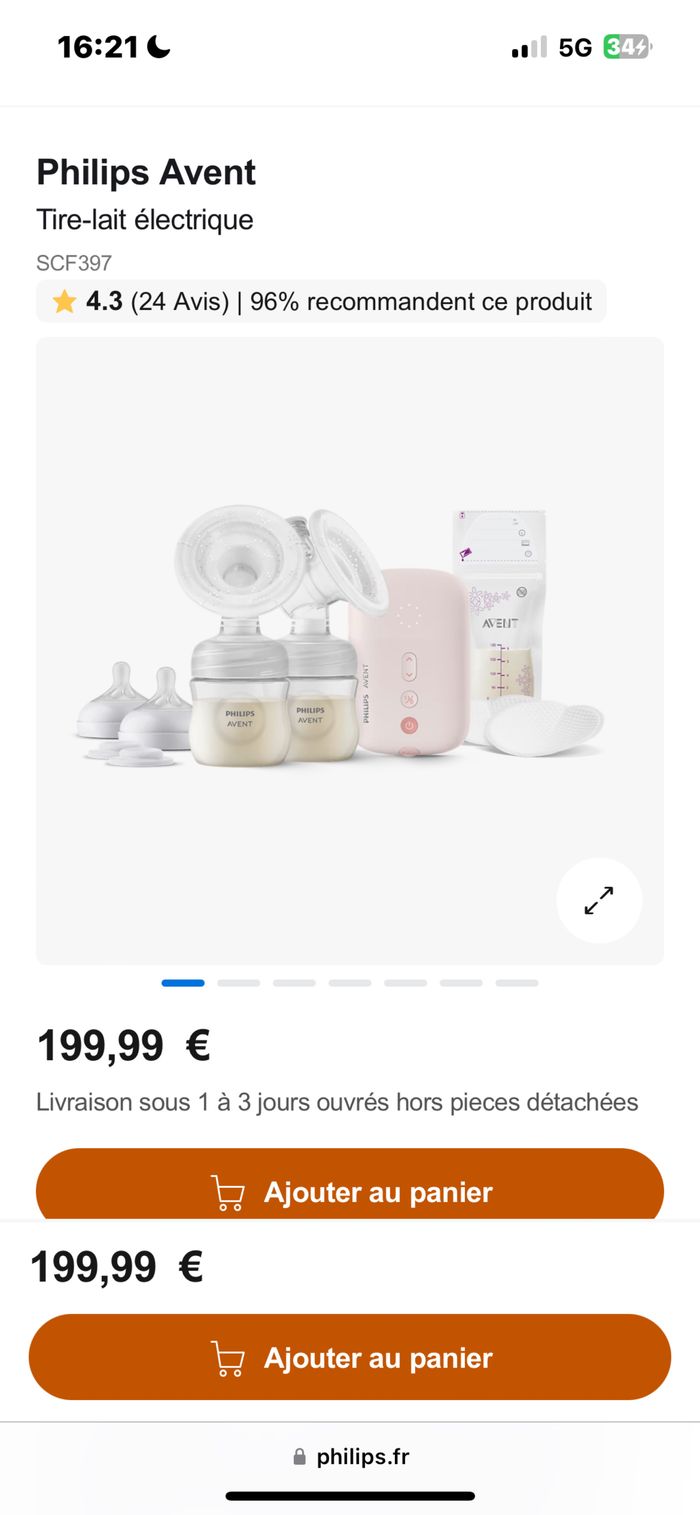 vendu avec 4 biberons, 2 tétines avec capuchons, et des sacs congélations. 8 modes pour stimuler le débit de lait et 16 modes pour le tirer. très peu servi car allaitement ne se passe pas comme voulu.