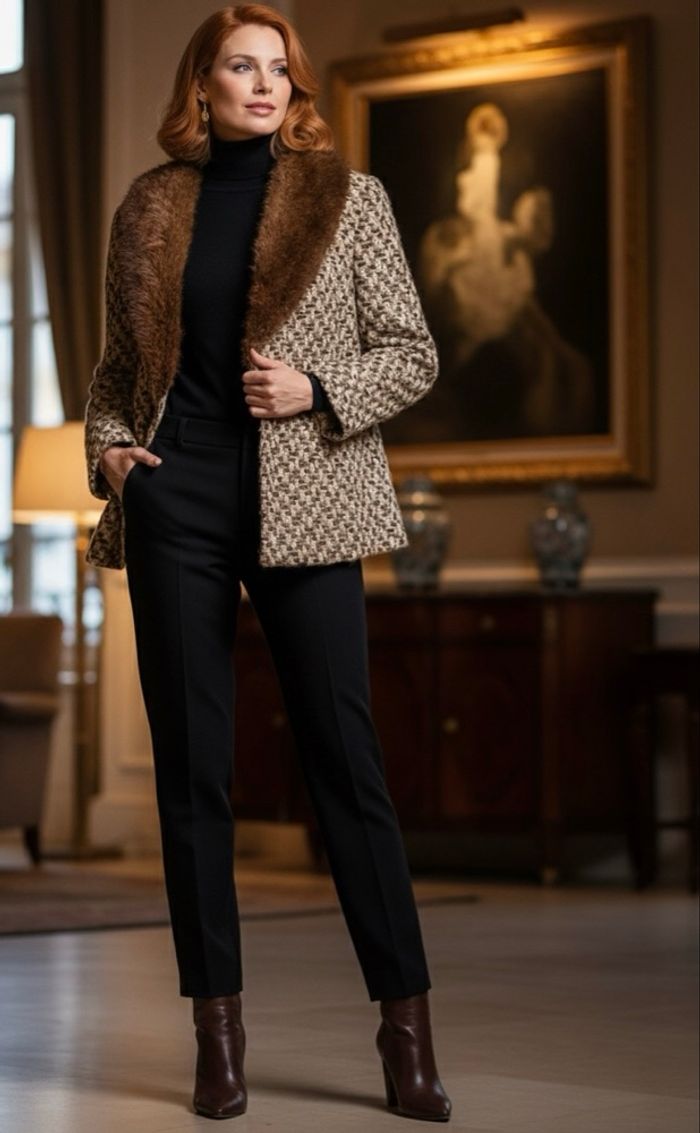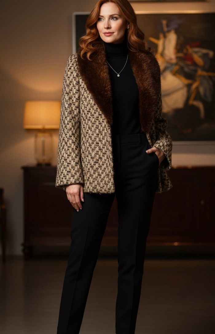 Veste pure laine/cuir marron femme L marque Heintz modèl Berlin