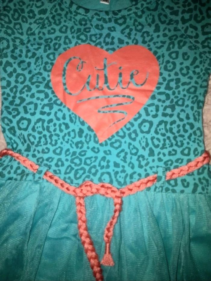 Robe d'été bi matiere a volant vert  émeraude bébé fille 12 mois - photo numéro 2