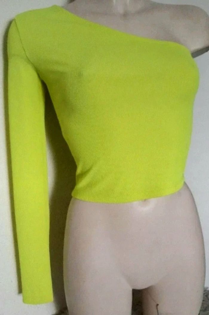 Haut décolté avec un seule Manche vert pistache Bershka s - photo numéro 1