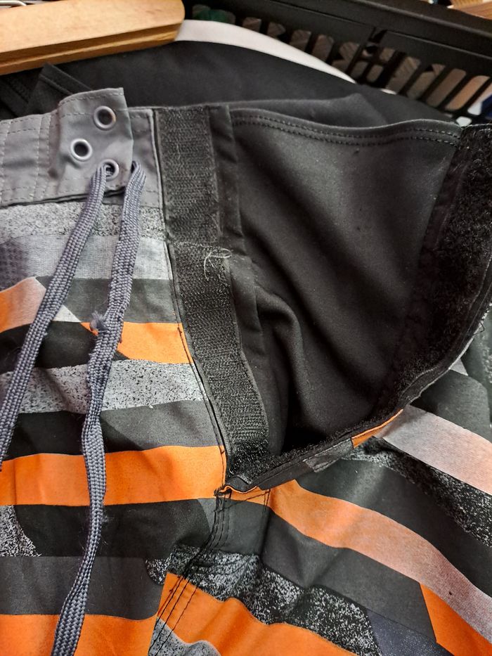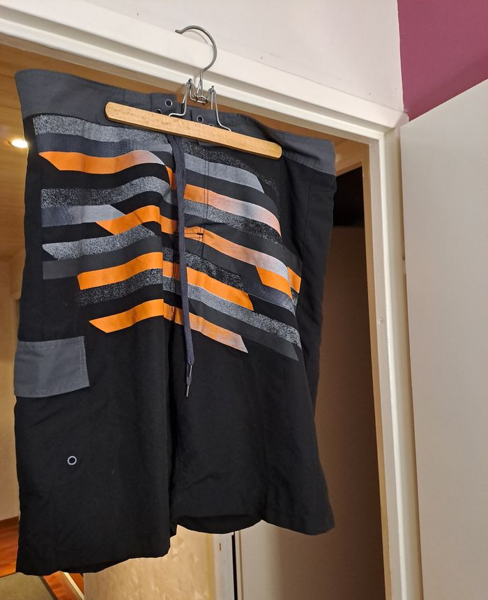 Short de bain en taille XL. Se ferme par scratch et cordon. Le cordon a des poils de sortis car ça a touché le scratch.