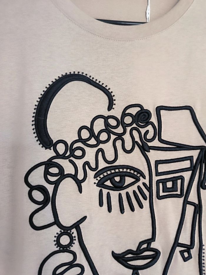 Magnifique tee-shirt loose brodé beige - photo numéro 1
