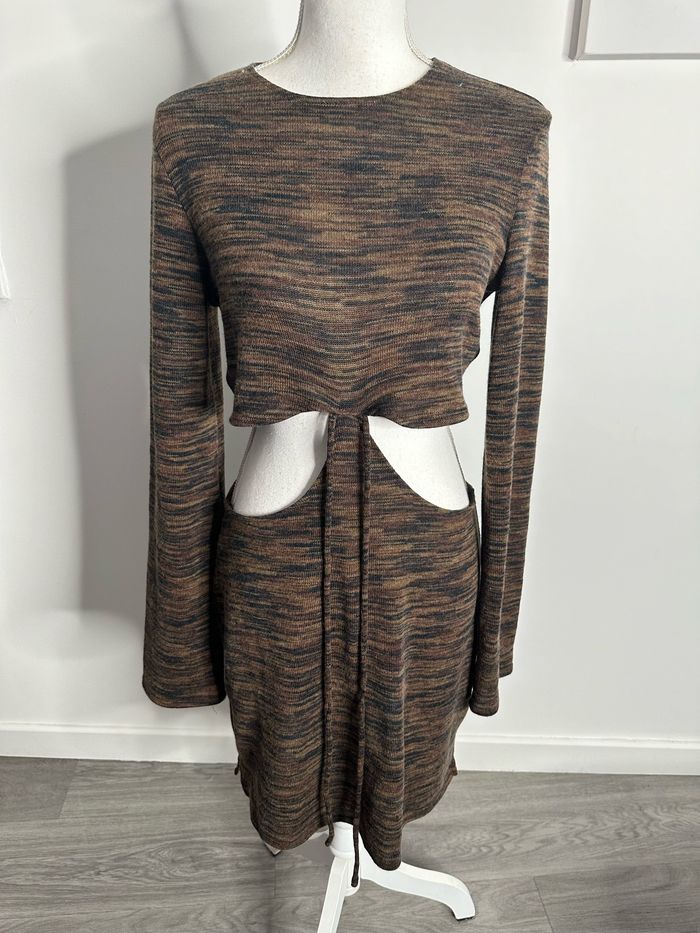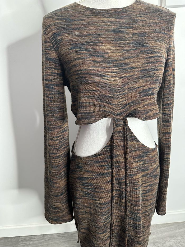 Robe ajourée - Excellent état - Taille 38 équivalent M - Marron et noir - Ajourée à la taille - Tissus moucheté - Plus d’étiquette de taille ni de matière