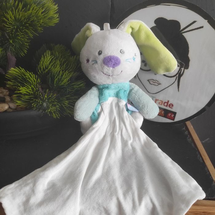 Doudou plat lapin Sucre D'orge bleu blanc vert étoile mouchoir Peluche Range - photo numéro 1