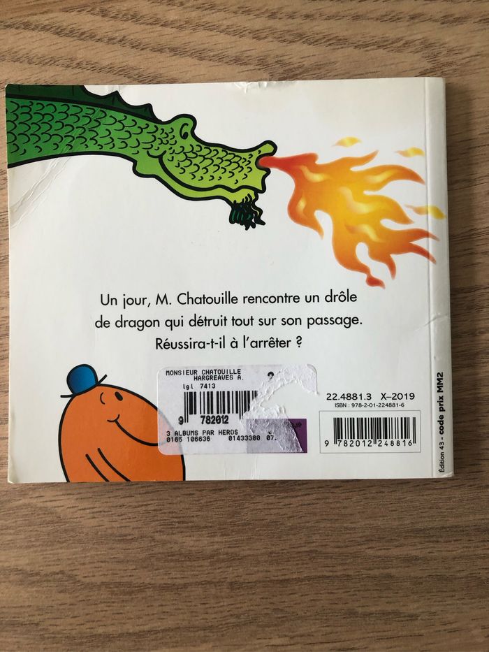 Livre M. Chatouille et le dragon Monsieur Chatouille rencontre un dragon qui détruit tout sur son passage. Réussira-t-il à l’arrêter ?