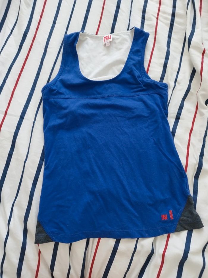 Bonjour Je vends un débardeur / tee shirt sans manches Dorotennis très peu porté. Brassière intégrée, composé majoritairement de coton