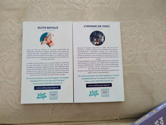Deux romans parfaits pour lire sur la plage Pas d'isbn car ils faisaient partie d'un jeu internet pour gagner un voyage sur intrigues voyage