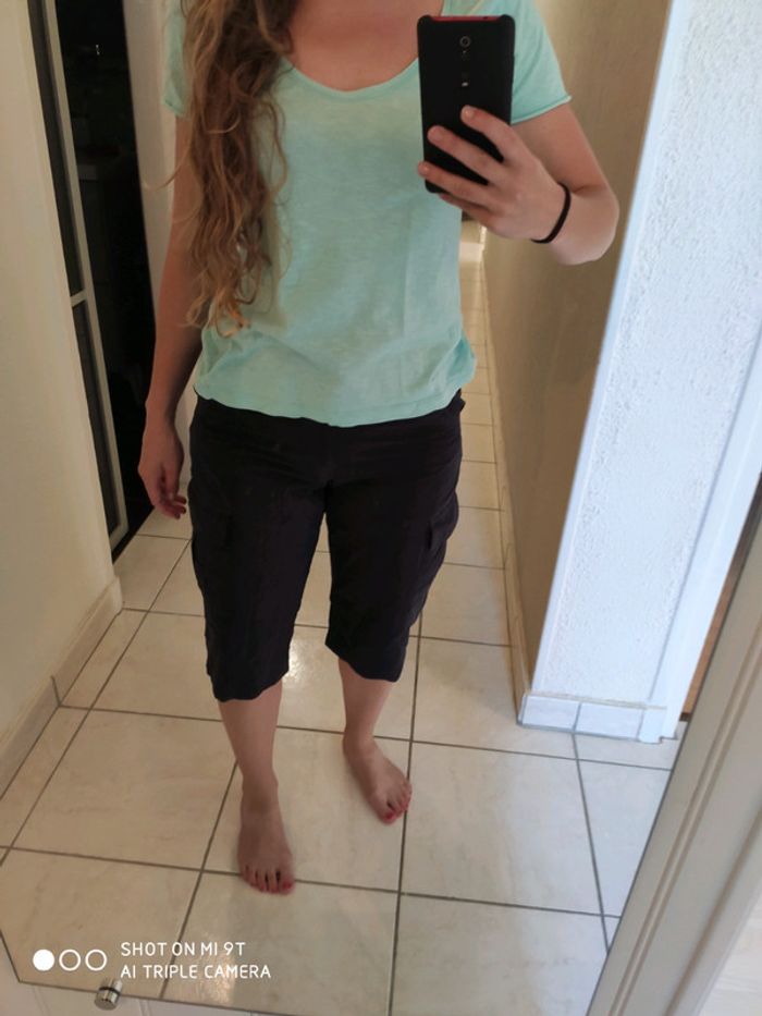 Je vends un pantacourt Domyos 14 ans mixte bleu marine en très bon état, peu porté.