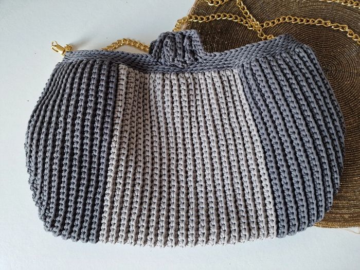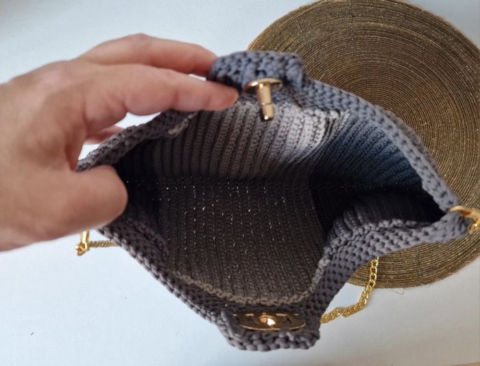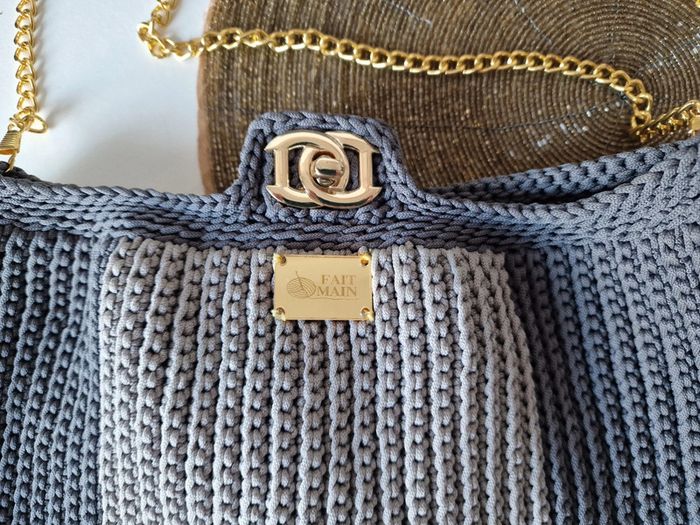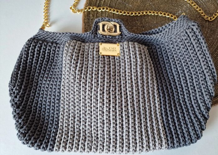 Sac à main , Chaîne doré FAIT MAIN 31x18 cm comme neuf En crochet gris