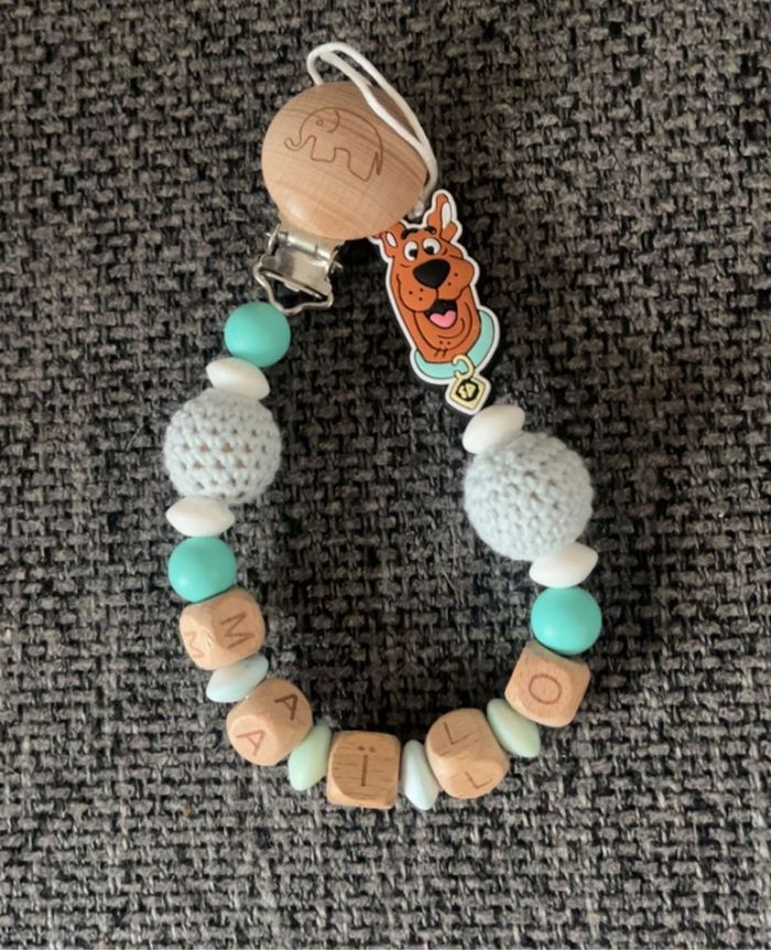 Attache tétine personnalisé en silicone ou en bois au souhait de l’acheteur . Personnalisable au choix de l’acheteur que ce soit la couleur comme le prénom ou le thème . Le fil est doublé pour plus de sécurité tout le long de l’attache tétine. N’hésitez pas à me demander et regarder mon dressing. Une photo vous sera envoyée avant l’expédition pour vous ayez un aperçu du rendu. Tous les produits sont réalisés avec du materiel spécial conçu aux bébés , enfants.