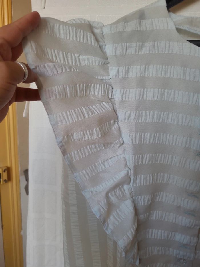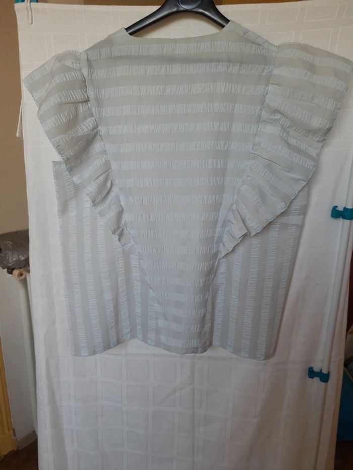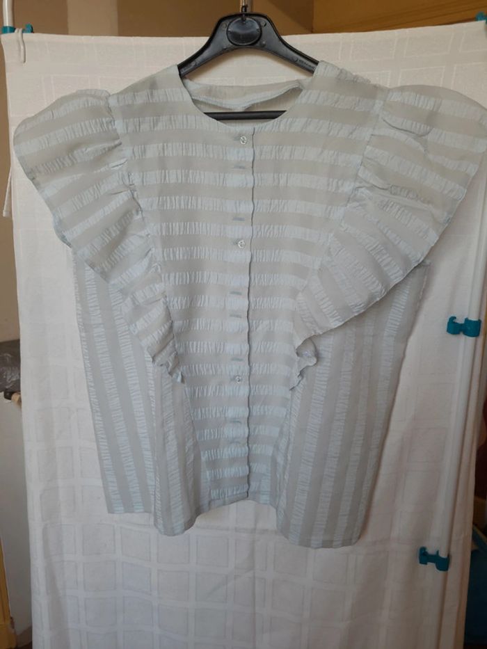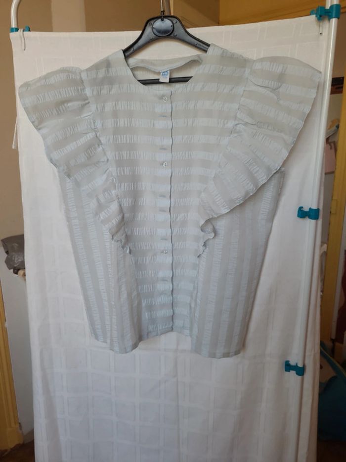 ⬇️mes autres annonces pour femme en taille 46 👉 #cg89femme46 😁 réductions activées des 2 articles ! une blouse ou chemise avec un volant qui part des épaules vers la taille. Le tissu est texturé et n'a pas besoin de repassage. Longueur : 65 cm Aisselles : 56 cm très bon état, taille 46 #vintage #chemise #blouse #volatn #taille46