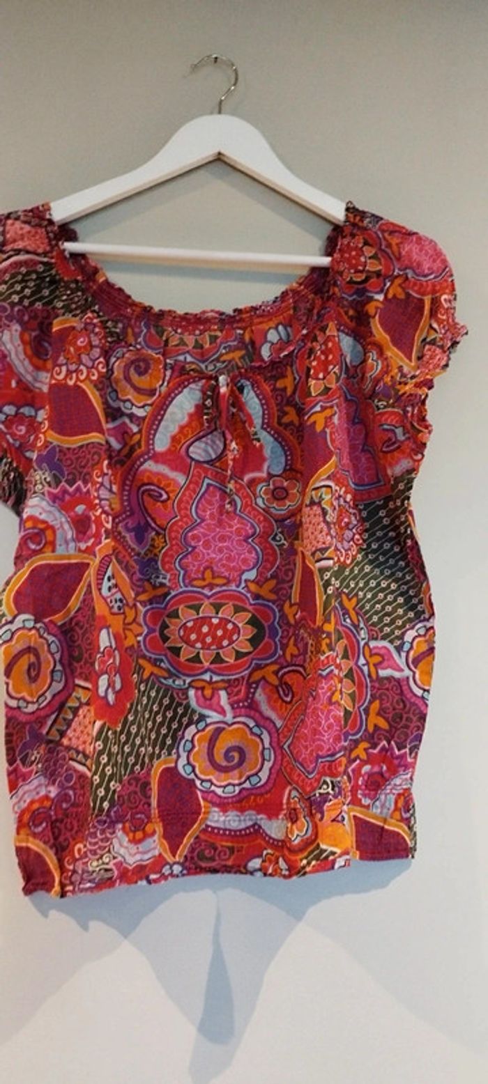 Jolie blouse imprimée multicolore Superbe pour l'été Peut se porter épaules dénudées Taille unique