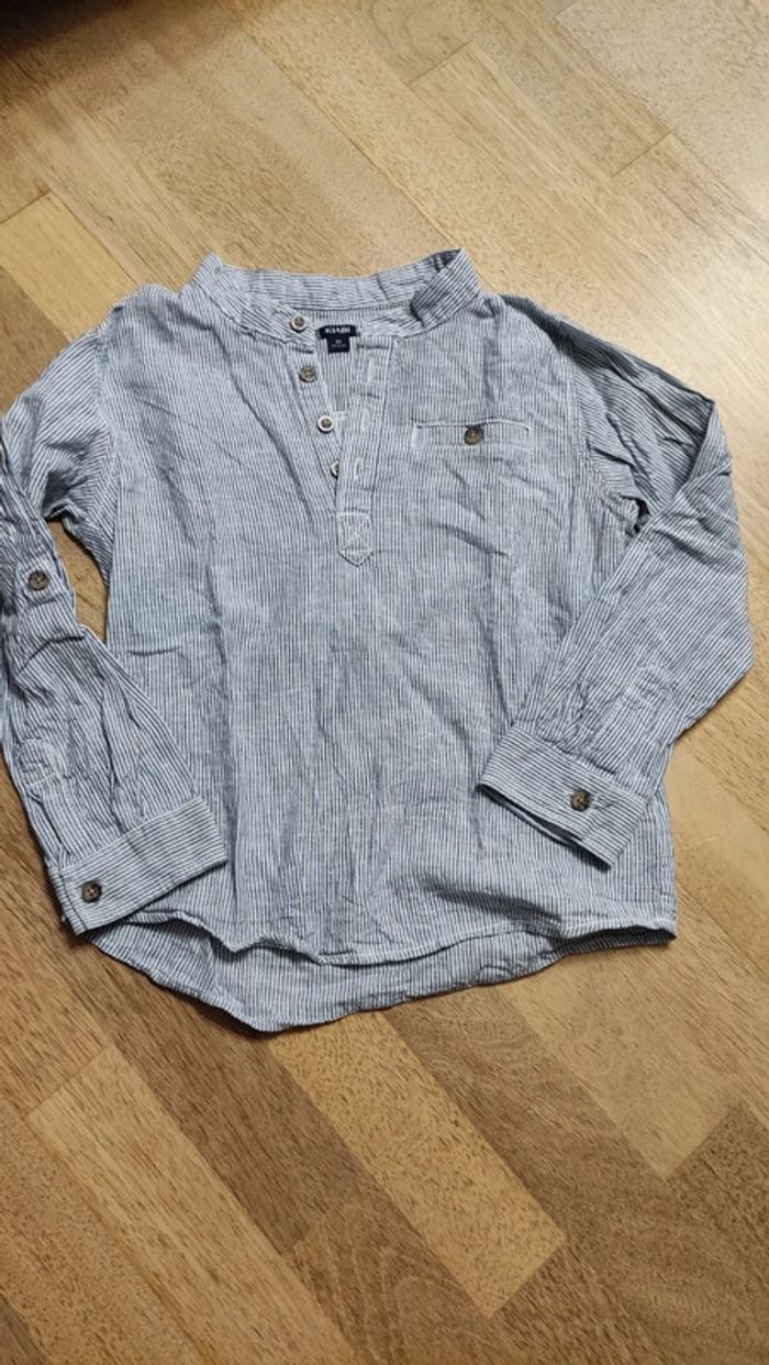 Kiabi Chemise légère a fines rayures bleues 8ans Chemise manches longues été lin et coton Possibilité de remonter les manches Kiabi 8ans