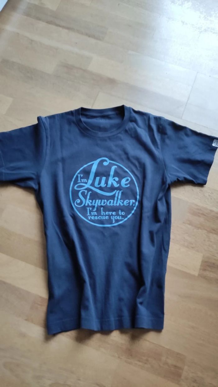 Pour les fans inconditionnels de la saga ce tee-shirt a l'effigie du héros Skywalker. Porté mais en excellent état. Taille S - 14ans Bleu marine